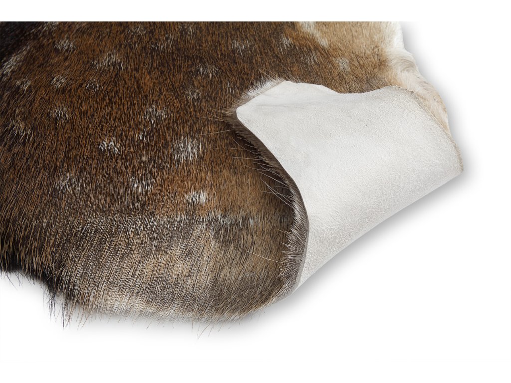 Material: blană naturală de căprioară, Dimensiune aprox.: 100 cm x 60 cm, Lungimea părului de blană: aprox. 7 cm, Culoare: maro închis cu o tranziție spre maro deschis cu pete deschise regulate tipice pentru această specie de vânat