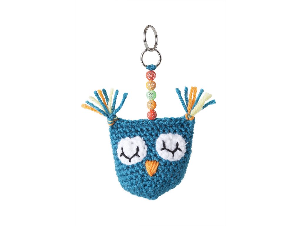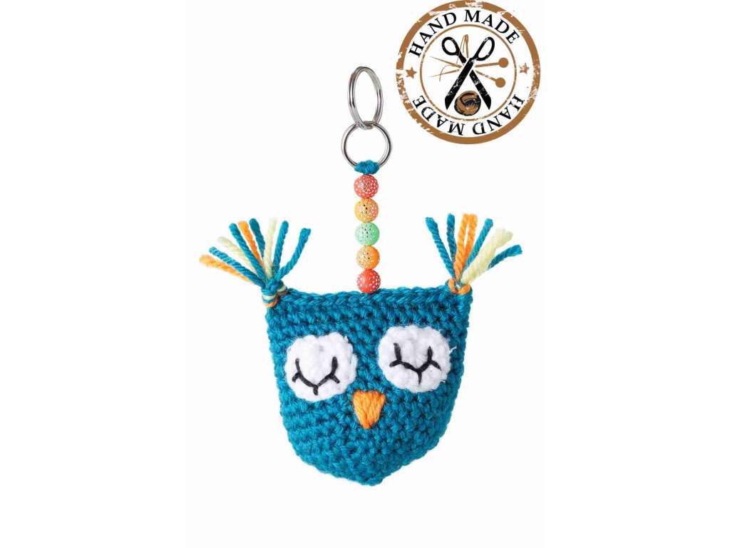 Breloc croșetat în formă de bufniță, verde PRODUCȚIE MANUALĂ ÎN REPUBLICA CEHĂ! Lichidare de stoc!