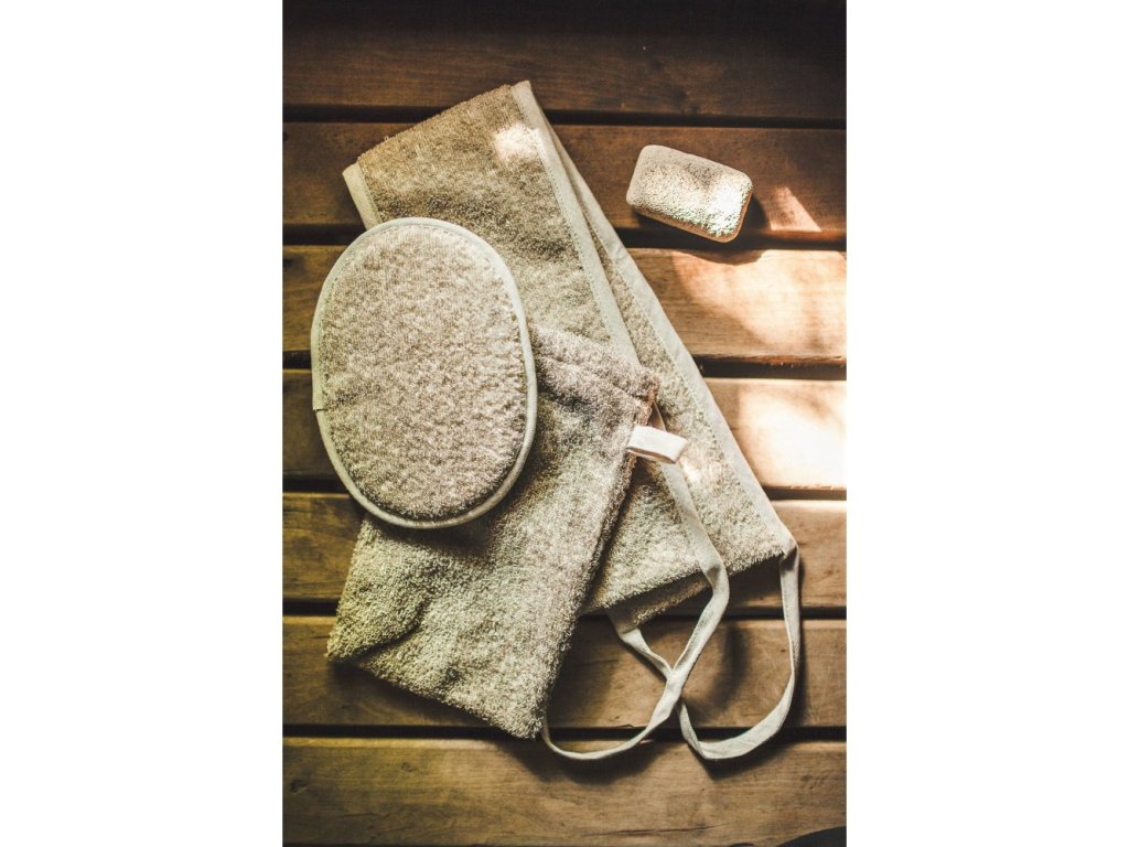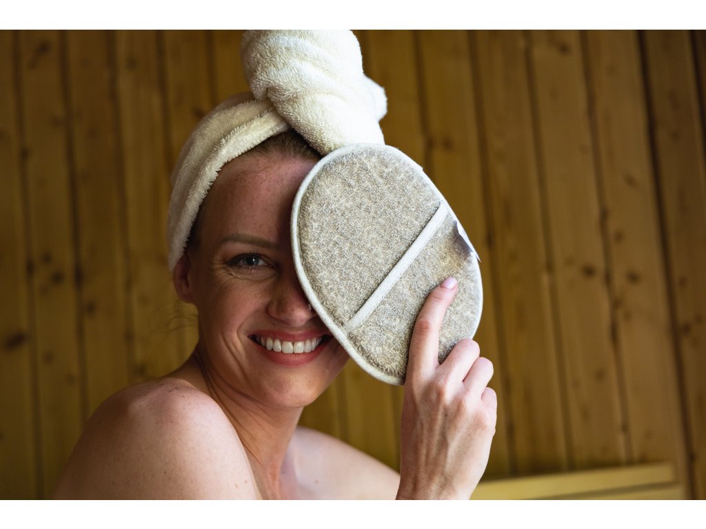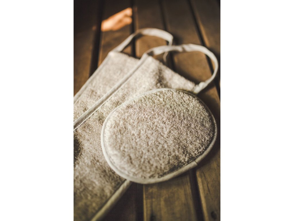 Bureții de masaj pentru corp, lavetele de masaj, benzile de masaj și mănușile sunt fabricate în mod intenționat din materiale puțin mai aspre, deoarece servesc ca exfoliant pentru corp (peeling). Sauna este locul ideal în care căldura dilată porii pielii, iar datorită acestor instrumente de masaj, nu numai că vă puteți spăla perfect corpul, ci și îl puteți masa cu mișcări delicate, pentru a îmbunătăți circulația sanguină și a elimina celulele moarte de la suprafața pielii. Datorită acestui masaj, pielea este reînnoită, devine foarte curată, netedă și pregătită pentru alte tratamente cosmetice.