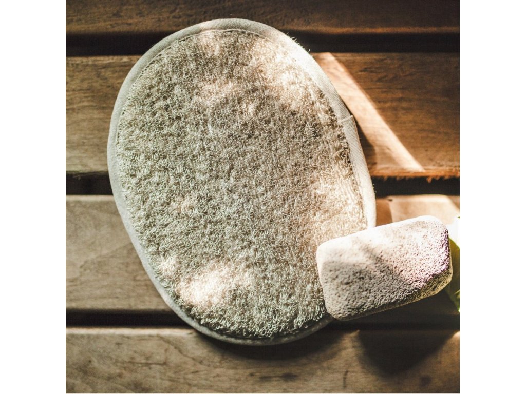 Buretele de masaj corporal este fabricat din 75% fibre de in și 25% fibre de bumbac. Acest burete de masaj este conceput pentru curățarea pielii umede și uscate. Masajul uscat cu acest burete acționează ca un "peeling" natural. În cazul masajului uscat, starea pielii se îmbunătățește. Masajul cu burete ajută la reducerea semnelor de celulită și stimulează fluxul limfatic. Este o modalitate excelentă de a scăpa de stresul în exces.