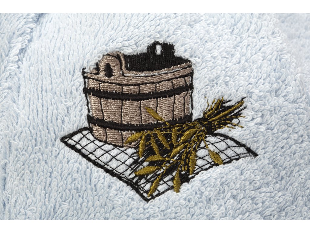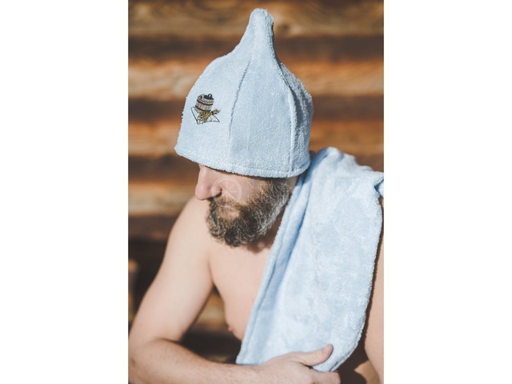 Căciula pentru saună este fabricată din 100% bumbac frotte, care este foarte fin și plăcut la atingere. Căciulile pentru saună sunt destinate utilizării în saună ca protecție a capului împotriva supraîncălzirii. Aceasta este funcția lor principală. Datorită materialului utilizat, căciula este mai rigidă, mai rezistentă și mai durabilă. Căciula pentru saună are culoarea bej, iar pe partea din față este brodat simbolul unei găleți.