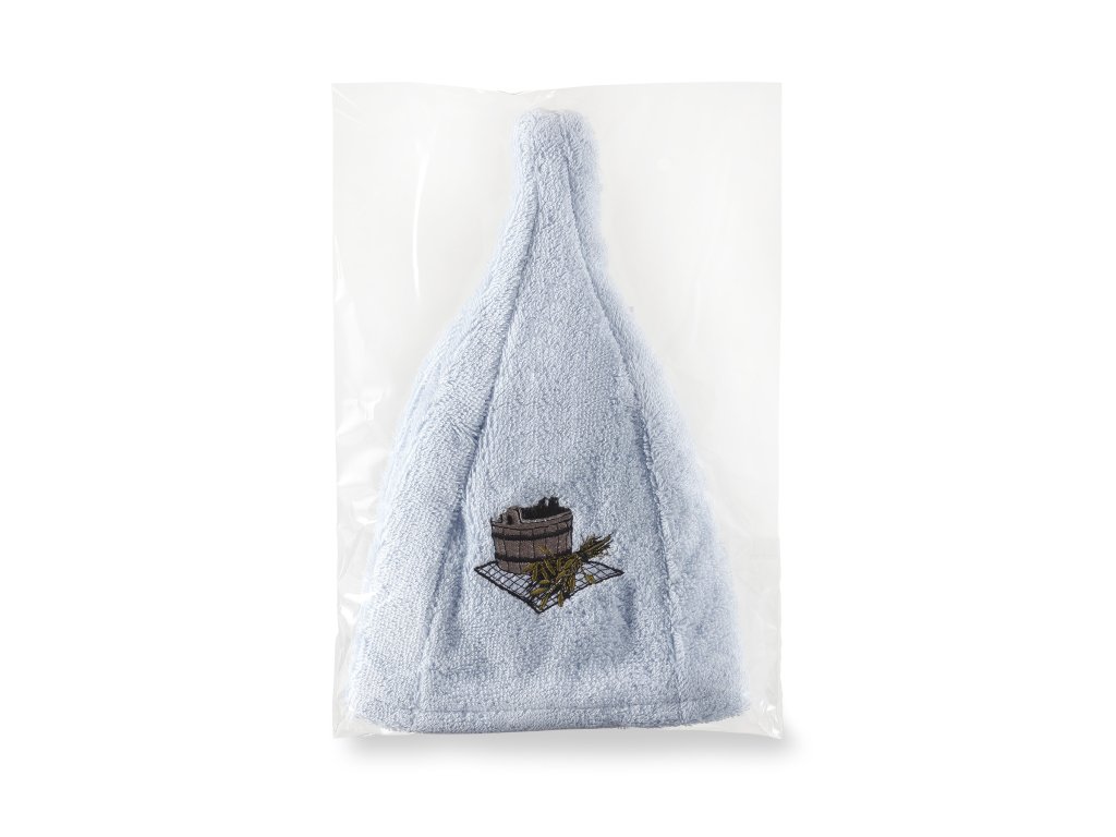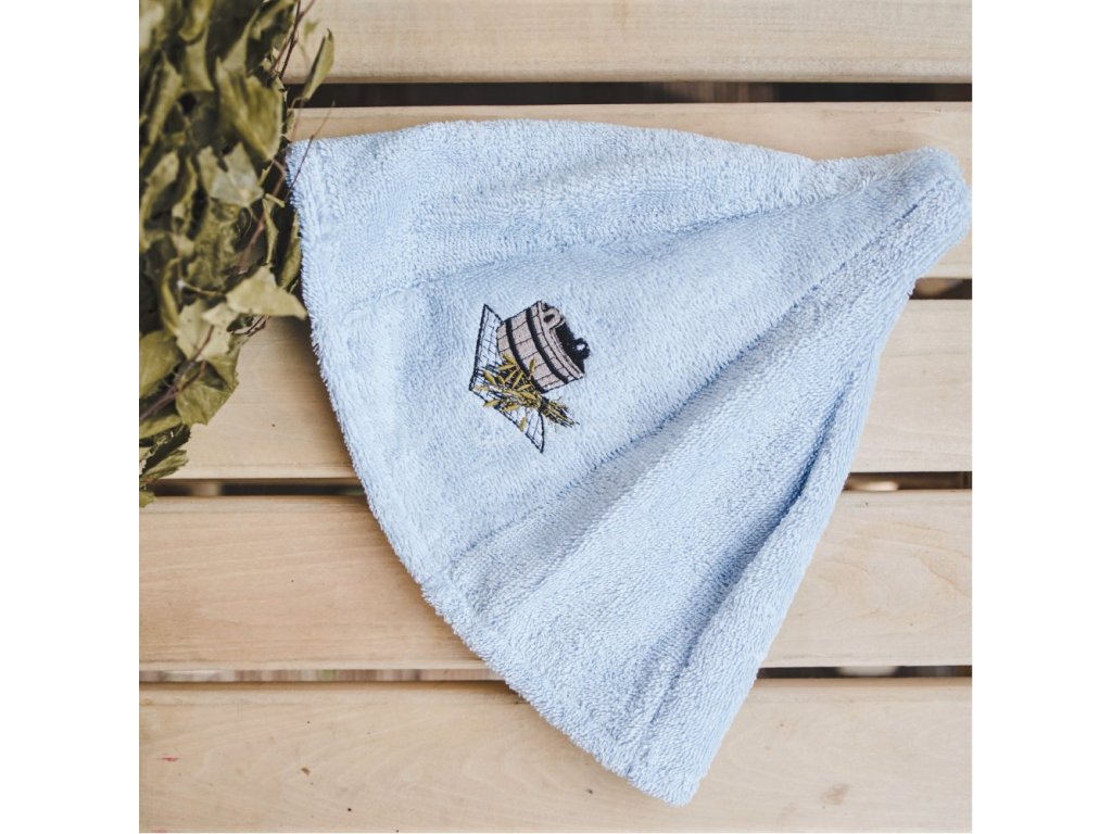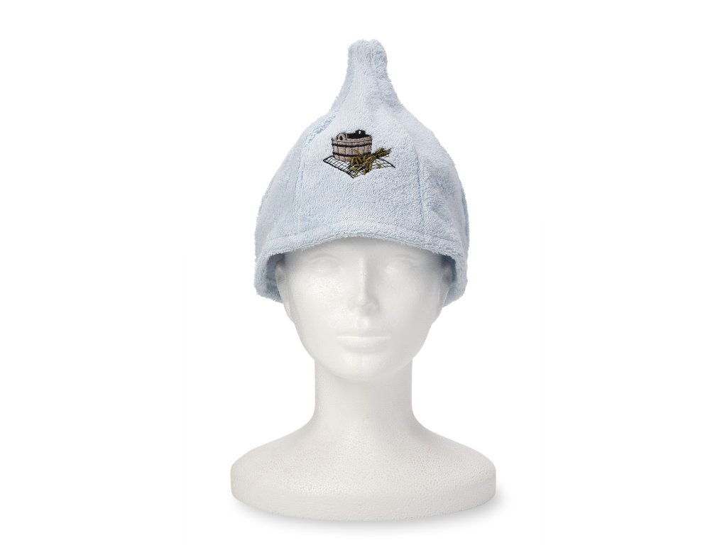 Căciulă pentru saună, albastru deschis, motiv găleată