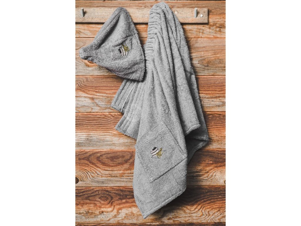 Căciulă pentru saună, gri, motiv găleată
