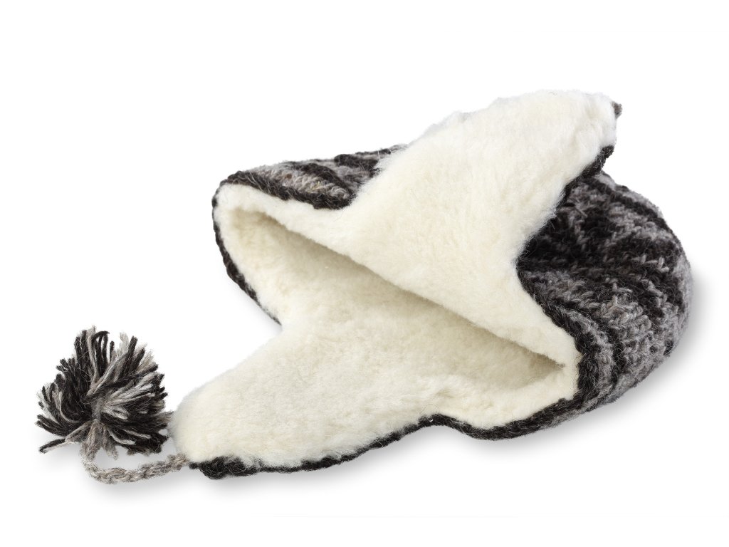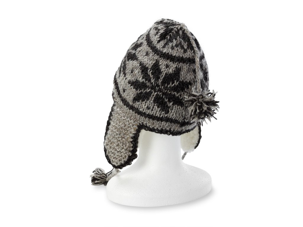 Material: 100% European Merino, Culoare: gri cu motive negre, Potrivit pentru: adulți, mărimea M - circumferința capului de la 54 la 57 cm
