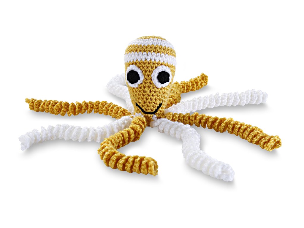 Material: 100% lână moale, umplută cu fibre goale; Culoare: cap alb-gălbui, tentacule alb-gălbui, Dimensiune: înălțimea capului 8 cm, lungimea tentaculelor 11 cm, lățimea totală când tentaculele sunt extinse 25 cm