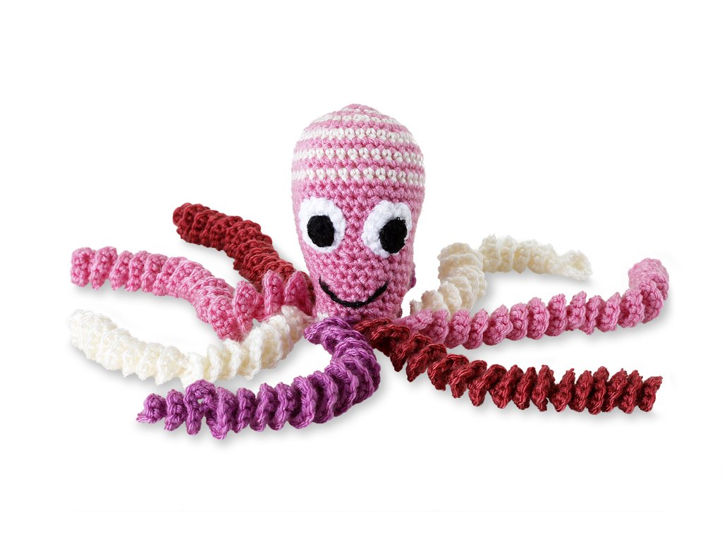 Material: 100% lână moale, umplutură din fibre goale, Culoare: cap roz, tentacule roz-roșu, Dimensiune: înălțime cap 8 cm, lungime tentacule 11 cm, lățime totală când tentaculele sunt extinse 25 cm