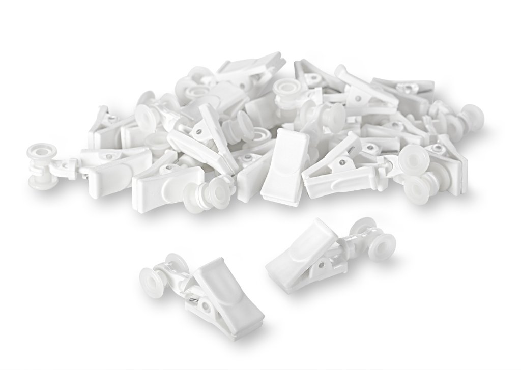 Clipsuri din plastic pentru perdele, pentru șine din plastic, albe, rotative