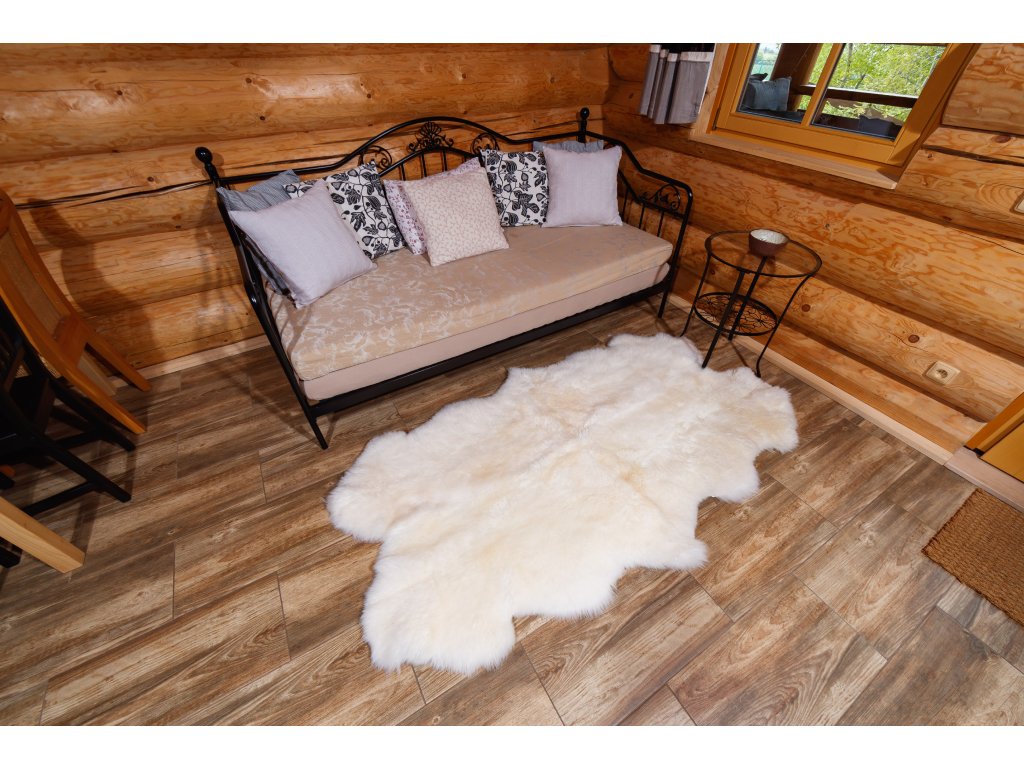 Material: piele naturală de oaie, Culoare: alb crem, Dimensiune medie: 190 x 115 cm, Formă: atipică