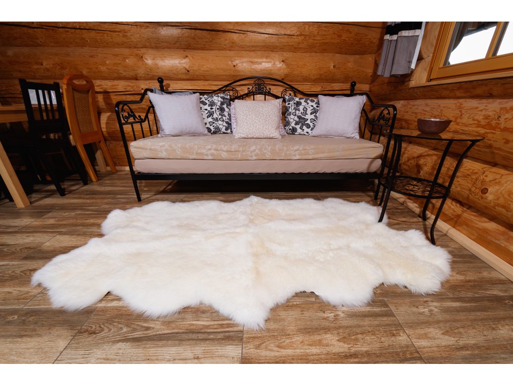 Covor de lux realizat prin cusut din piele de oaie, de culoare alb-crem, are dimensiunea de 190 x 115 cm. Blana poate fi un element decorativ unic în sufrageria sau dormitorul dvs.