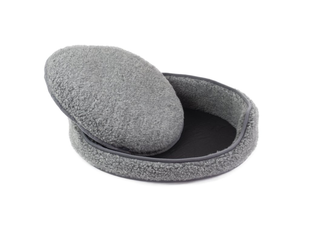 Potrivit pentru: câini sau pisici; Material: 100% Merino European (100% lână de oaie) / 100% bumbac bio / inserție izolatoare; Mărimi disponibile (diametru interior al culcușului): S - ∅ 60 cm, L - ∅ 100 cm; Înălțimea spătarului: 15 cm din exterior, 10 cm măsurat în interiorul culcușului; Interior inserție Basic: strat izolant în interior, poate fi scos, husă lavabilă, închidere cu fermoar; Greutate totală: 0,75 kg; Culoare: gri; Gramaj lână: 450 g/m2