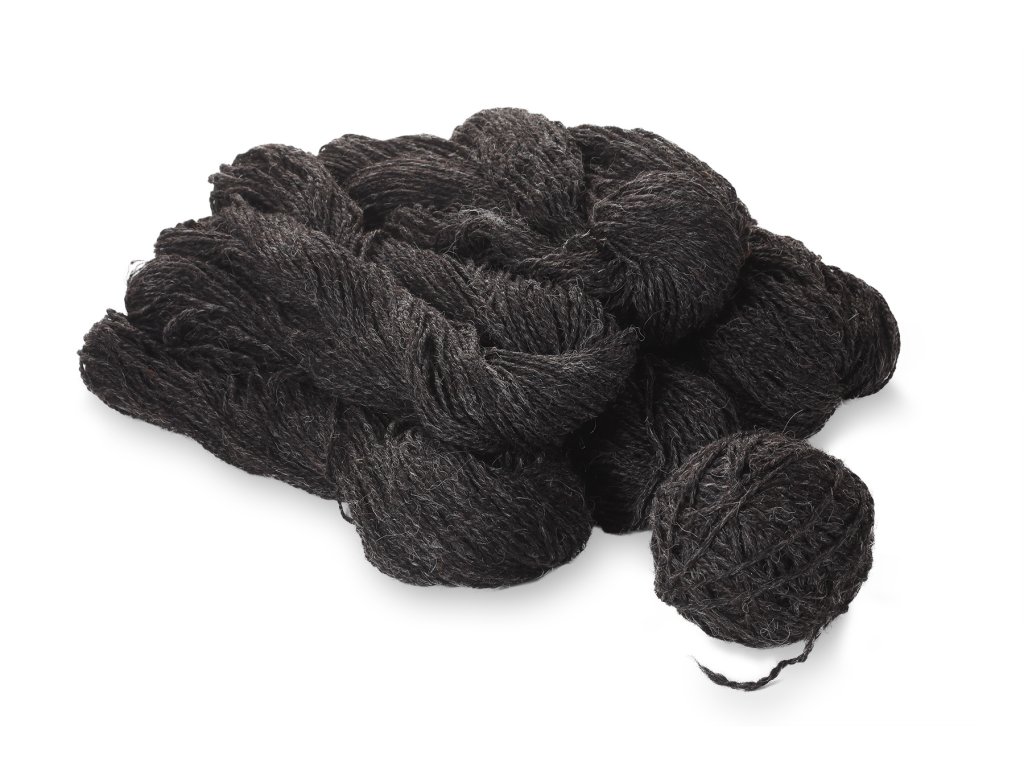 Firul de lână dublu este livrat în mănunchiuri, culoarea firului este negru. Toarsă manual, 100% lână de oaie Merino European, vopsită cu coloranți naturali. Lâna și-a păstrat parțial lanolina sa naturală. Potrivit pentru tricotat. Greutatea este de circa 1.000 g, cu o abatere de circa +- 25 g.