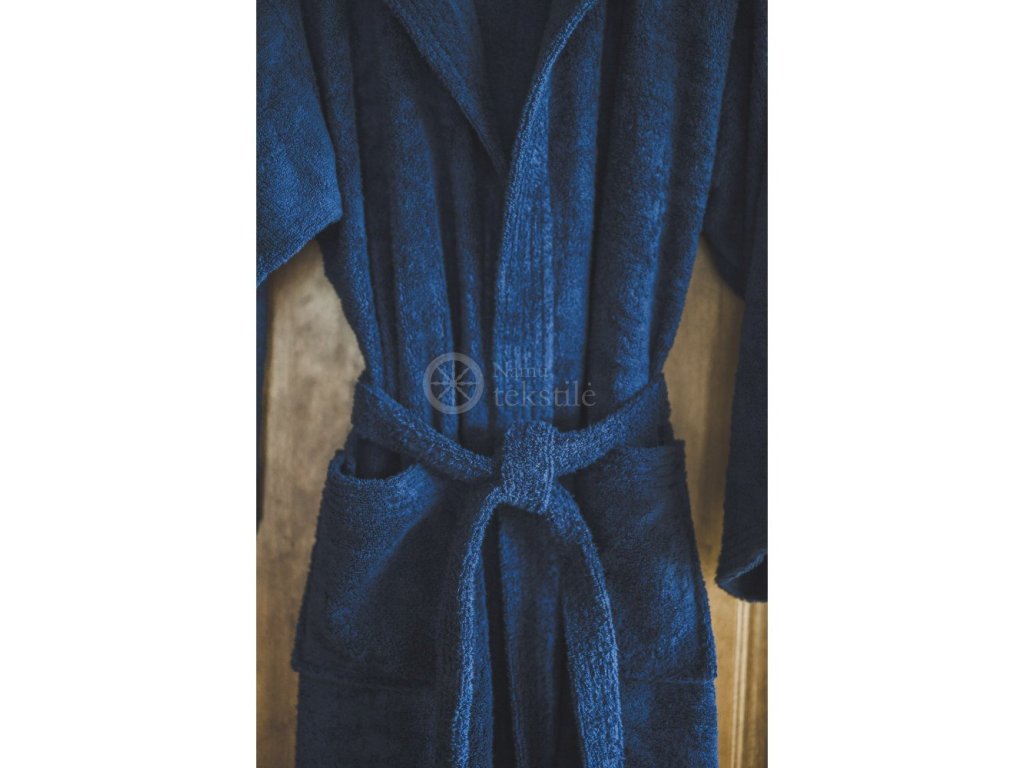 Halatul de saună frotte, pentru bărbați, este confecționat din 100% bumbac moale, de culoare albastru închis. Acest halat de baie pentru saună este foarte moale, fin și pufos la atingere.