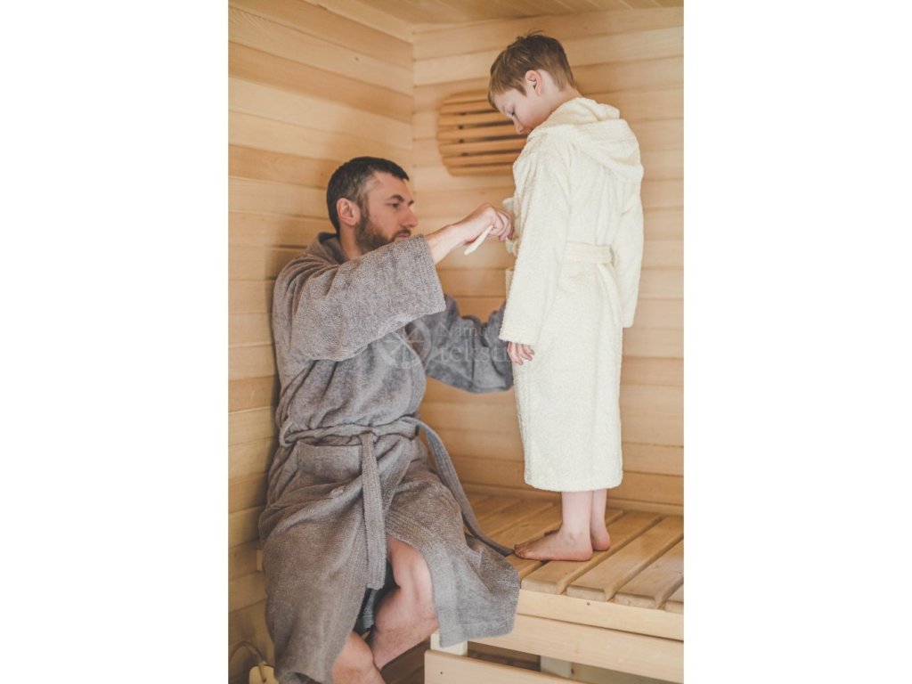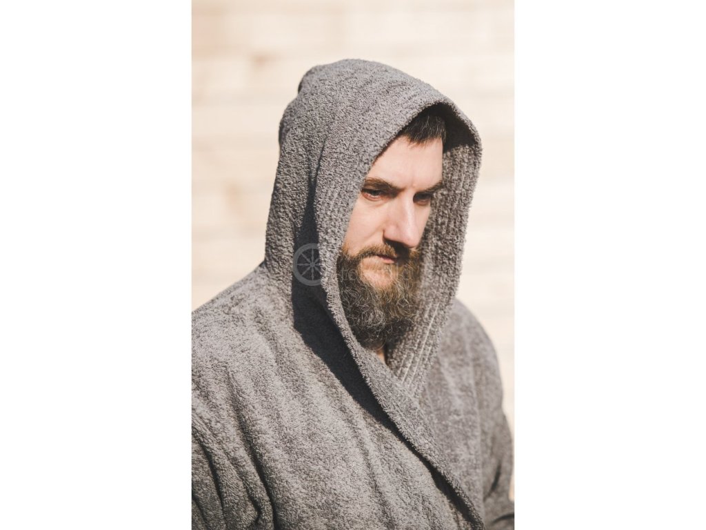 Material: 100% bumbac, Culoare: gri, Mărimi: L, XL, 2XL, Potrivit pentru: bărbați, Utilizare: accesoriu pentru șederea în saună sau uz casnic; Tip de închidere: curea, Gramaj: 500 g/m2