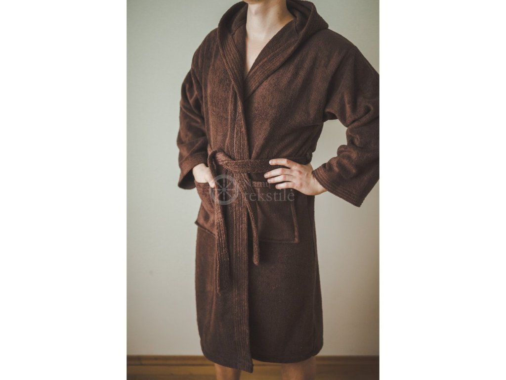 Halatul de saună pentru bărbați este fabricat din 100% bumbac frotte. Acest material este specific prin faptul că produsele fabricate din el sunt foarte plăcute la purtare. Halatul de saună în culoarea maro ciocolatiu este cu adevărat moale, pufos și foarte plăcut la atingere. Acest accesoriu moale și practic servește ca îmbrăcăminte ideală pentru seară, când, după o zi obositoare, vă faceți un duș și vă puteți înveli în el pentru a vă relaxa. Pentru mulți, dimineața de weekend începe cu această îmbrăcăminte și o ceașcă de cafea sau ceai fierbinte.