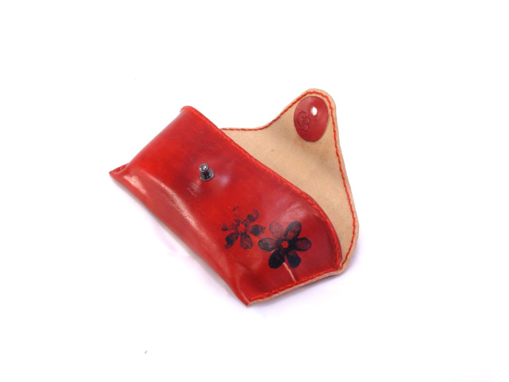 Material:piele de vacă;Culoare: roșu cu bordură neagră;Grosime: 1 mm; Fixare: nit metalic; Dimensiune:15,5 x 17,5 x 6,5 cm;Adâncime:4 cm