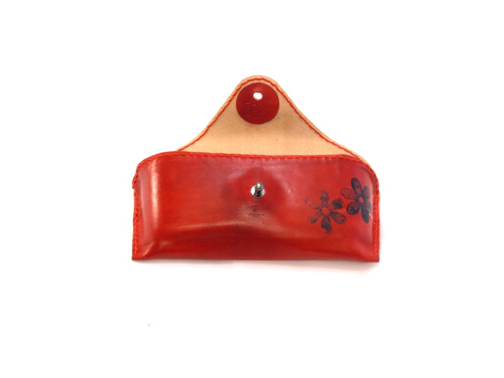Husă din piele pentru ochelari, roșie, Wooline Patchwork®