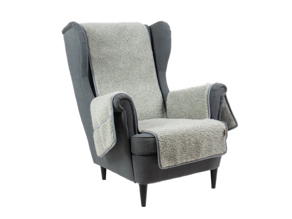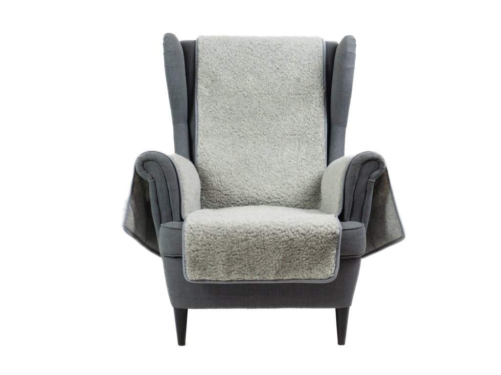 Husa de fotoliu în gri deschis din lână de oaie naturală este potrivită pentru toate tipurile de fotolii. Husa este foarte confortabilă și caldă. Pe partea dreaptă și stângă sunt amplasate buzunare laterale, care pot fi folosite pentru a ține telecomanda, ziarele sau jocurile de cuvinte încrucișate. Culoarea gri a capacului asigură posibilitatea de utilizare în diferite tipuri de interior.