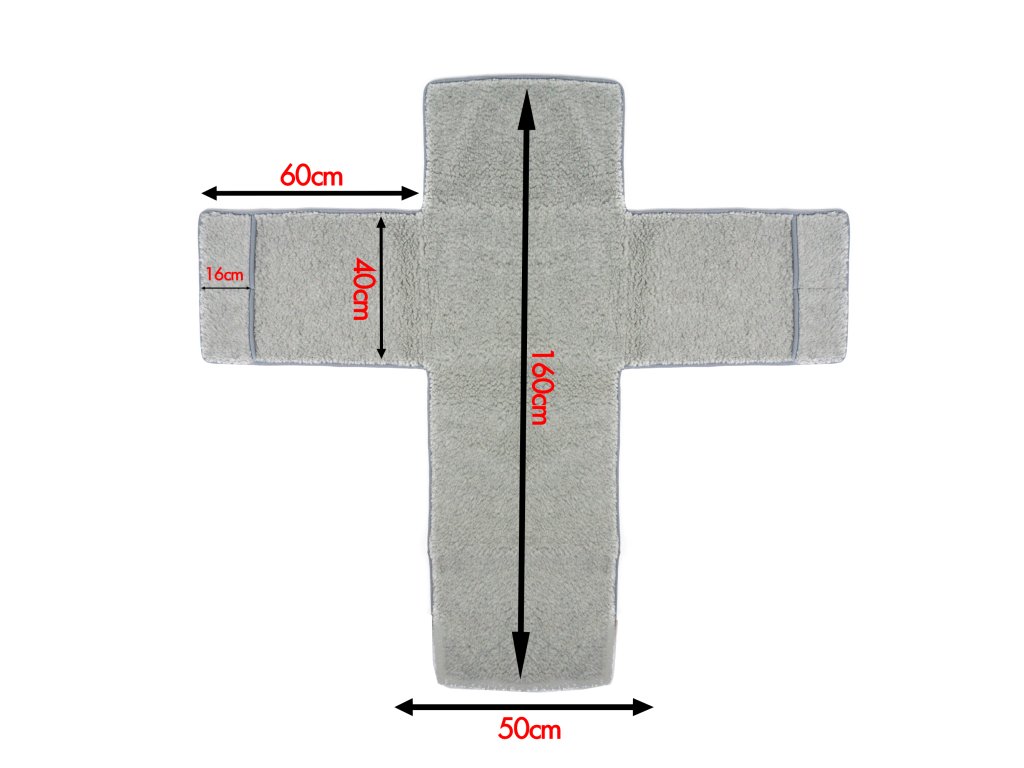 Material: 100% lână de oaie - European Merino, Dimensiune: suprafață totală de ședere - lungime 160 cm x lățime 50 cm, (vezi imaginea de mai jos pentru dimensiuni detaliate), Culoare: gri deschis, Greutate: 0,45 kg, Buzunare laterale: DA