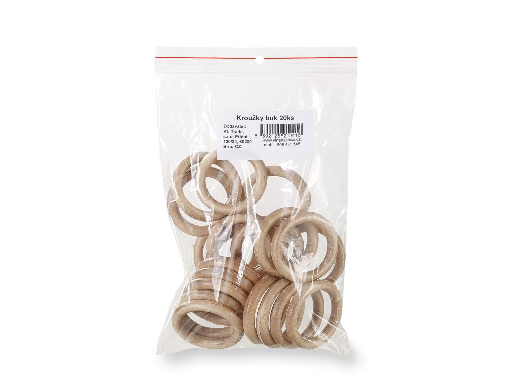 Inelele din lemn pentru perdele sunt potrivite pentru garnituri cu diametrul de 28 mm. Inelele sunt furnizate în culoarea fagului. Pachetul conține 20 buc.