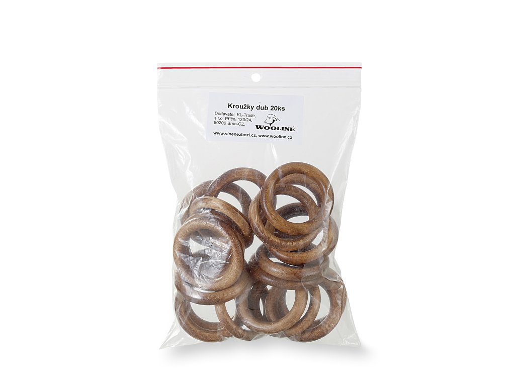 Inelele din lemn pentru perdele sunt potrivite pentru garnituri cu diametrul de 28 mm. Inelele sunt furnizate în culoarea stejarului. Pachetul conține 20 buc.