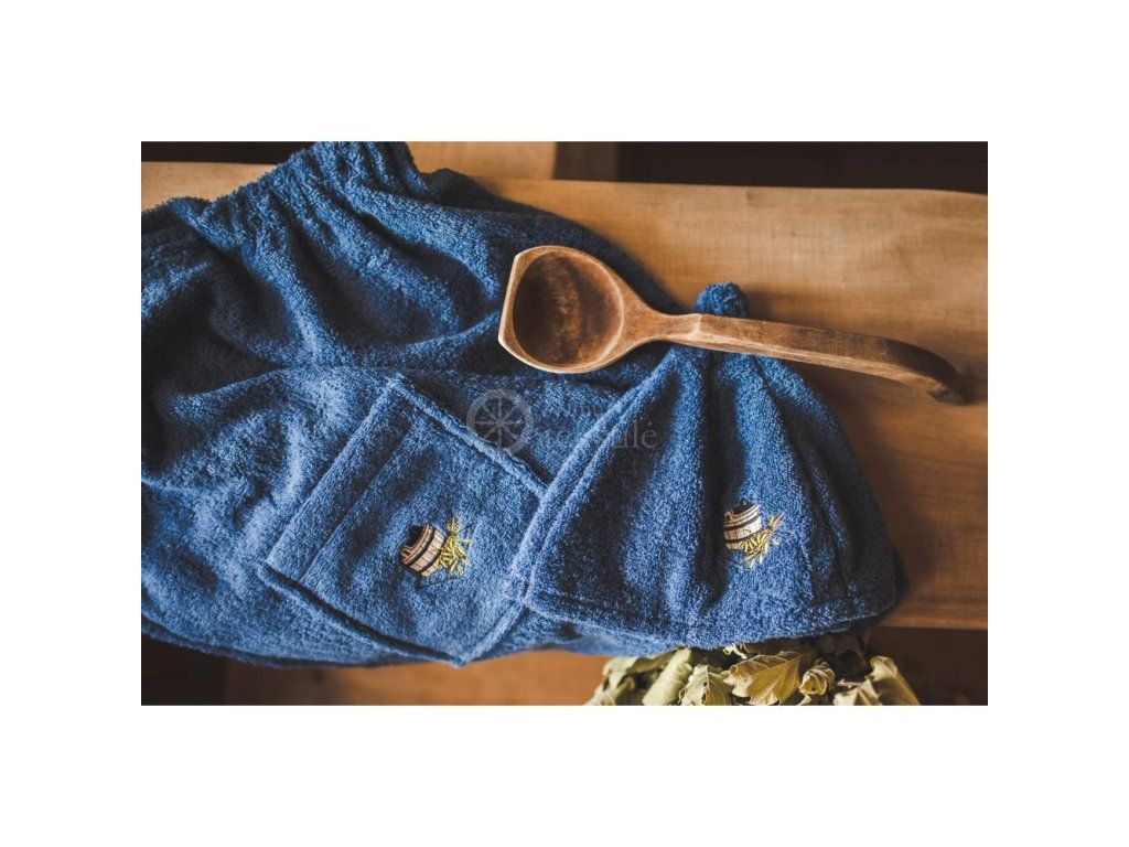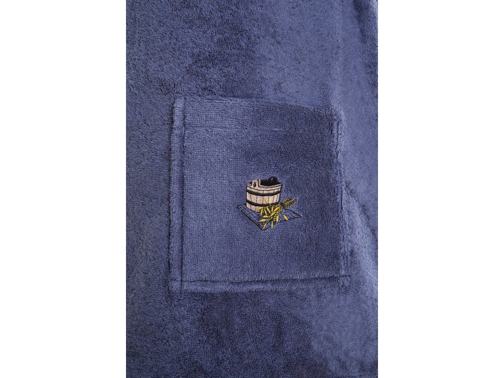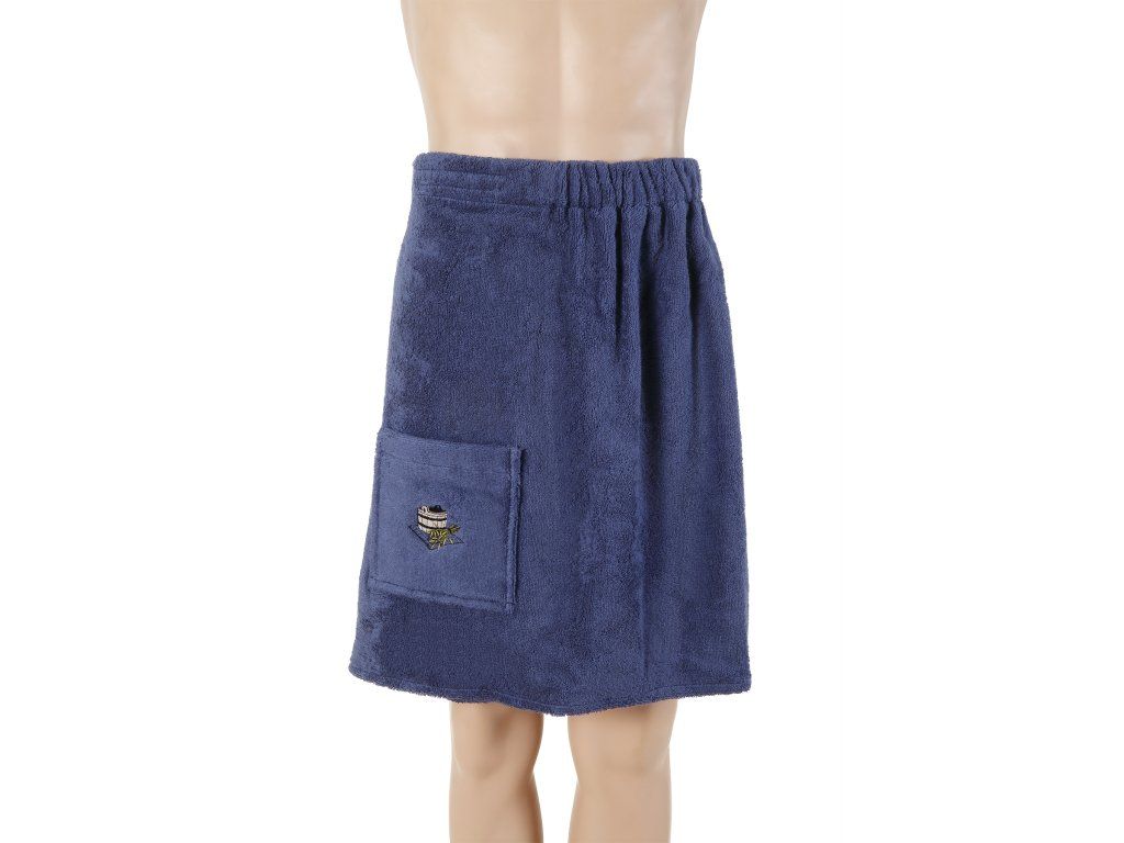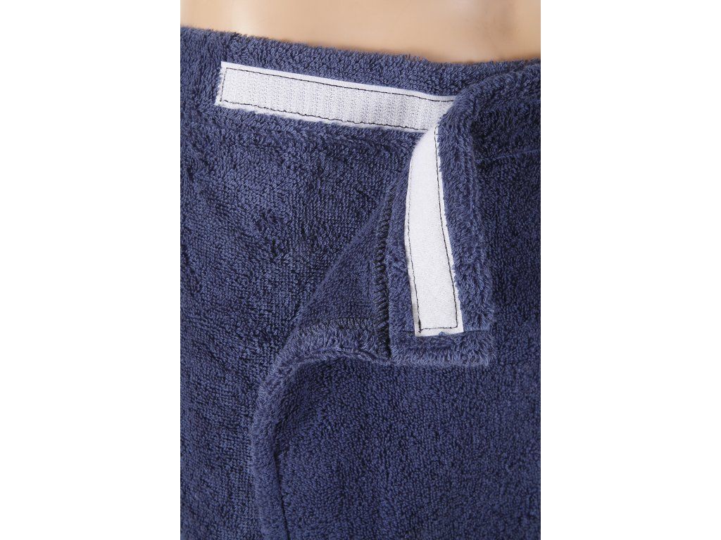Material: 100% bumbac, Culoare: albastru închis, Dimensiune: 55 x 150 cm, Potrivit pentru: bărbați, Utilizare: accesorii pentru saună, Fixare: velcro