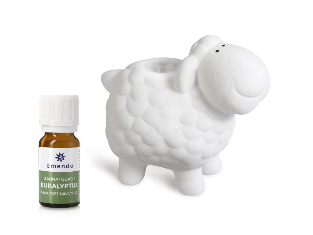 Lampa ceramică pentru aromaterapie este potrivită atât pentru utilizare în interior, cât și pentru a face mai plăcută șederea în saună. Lampa Aroma în alb în formă de oaie este un decor frumos, practic și funcțional pentru interiorul dvs. Uleiul parfumat de eucalipt este inclus.