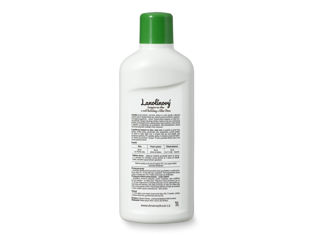 Șampon lanolin pentru spălarea lânii de oaie cu Aloe vera; Tip șampon: lichid; Potrivit pentru: spălarea produselor din lână de oaie, curățarea uscată a blănii de oaie; Volum: 1 litru