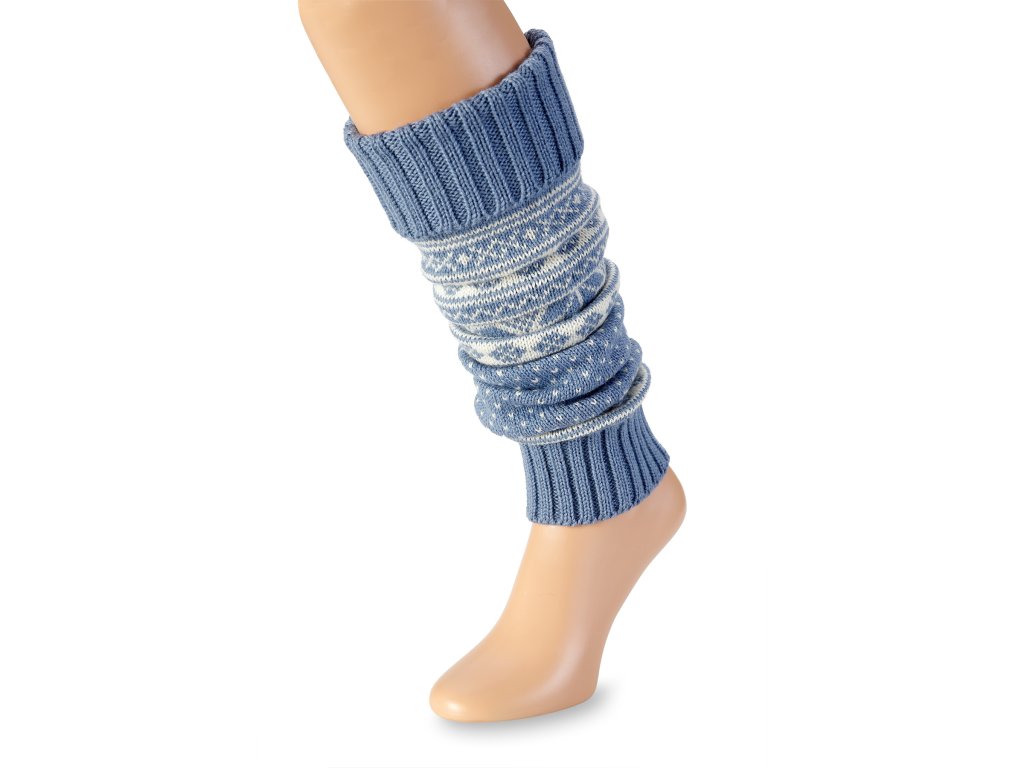 Manșon din lână pentru gambă, albastru-alb, motiv norvegian Moale! Elegant! Stilat!