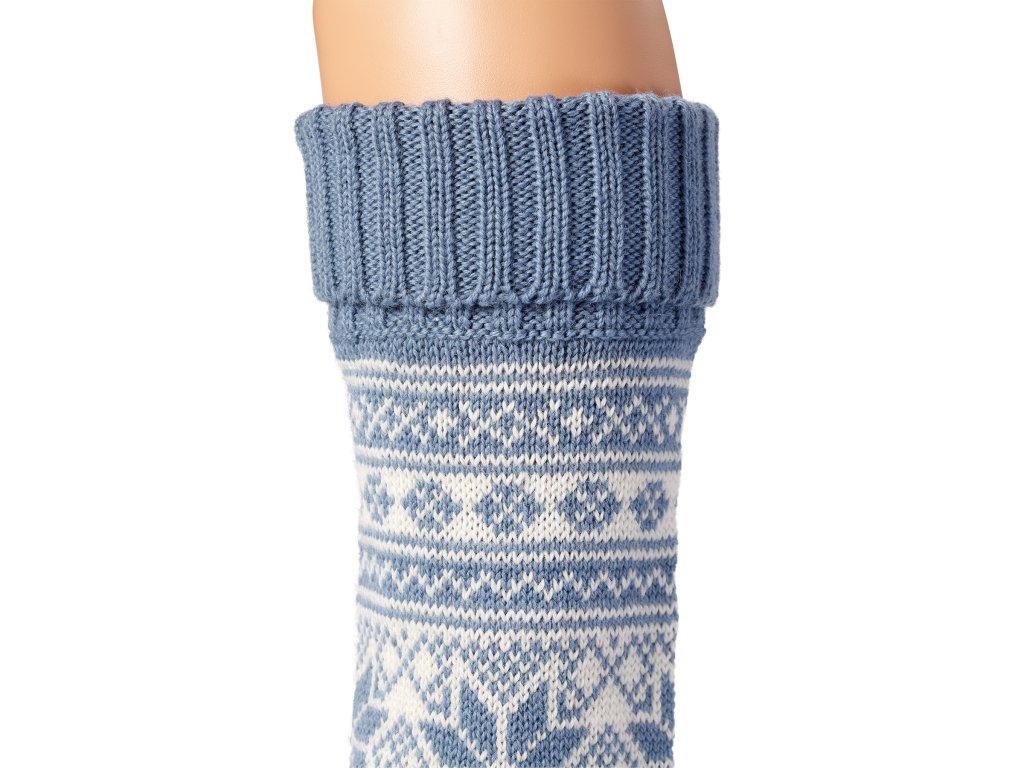 Aceste manșoane călduroase din lână, cu motiv norvegian, sunt fabricate cu tiv liber în partea superioară și inferioară. Tivul este dublu în zona superioară a gambei, astfel încât manșonul se ține foarte bine. Tivul liber asigură o bună circulație sanguină la nivelul membrelor inferioare, gamba nu este strânsă și piciorul se bucură de confort total. Manșonul pentru gambă nu strânge și se adaptează la circumferința gambei, dar totuși se menține perfect pe picior, nu alunecă și nu se rulează. Aceste manșoane din lână sunt destinate, de asemenea, tuturor persoanelor care au probleme cu circulația sanguină deficitară la nivelul membrelor inferioare. De asemenea, sunt potrivite și pentru persoanele care suferă de diabet.