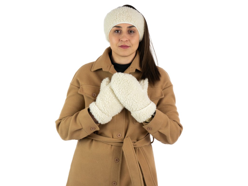Mănuși din lână pentru iarnă, de culoare alb natural. Gramajul lânii utilizate este de 500 g/m2, ceea ce garantează proprietăți termice foarte bune. Mănușile tricotate sunt un accesoriu ideal și practic pentru garderoba oricărei femei. Mănușile din lână pentru femei sunt moi, fine și foarte plăcute la atingere. Mănușile de iarnă pe un deget sunt disponibile în două mărimi și sunt potrivite în special pentru perioadele mai reci ale anului (toamnă, iarnă).