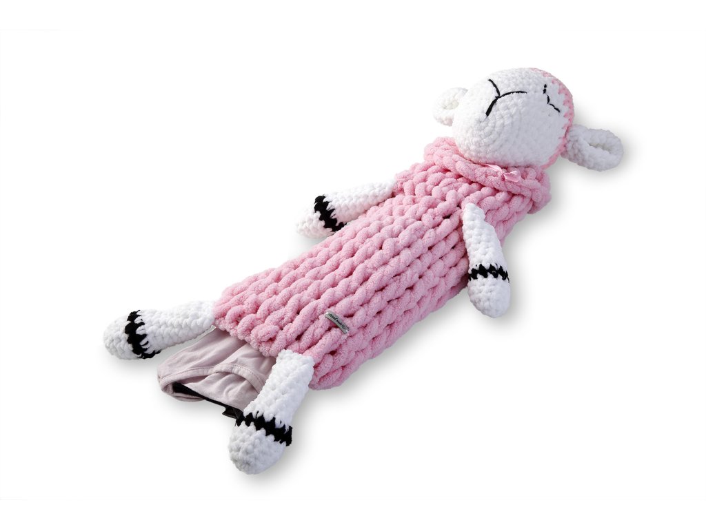 Anghila în pijama sub forma unei oi roz poate servi, de asemenea, ca o jucărie cu care să te joci. Acest sac de pijama moale este foarte popular printre copii datorită designului său drăguț și plăcut. Geanta are o deschidere în partea de jos în care puteți pune pijamale pliate și o puteți închide trăgând de cordon. Materialul utilizat este ușor de spălat în mașina de spălat, la modul de spălare delicată, programul pentru lână. Întreținerea este foarte ușoară. Lungimea pungii de pijama este de aproximativ 64 cm și datorită acestui fapt mai multe pijamale pot încăpea în pungă. Astfel, săculețul poate fi folosit și pentru două pijamale, pentru frați și surori.