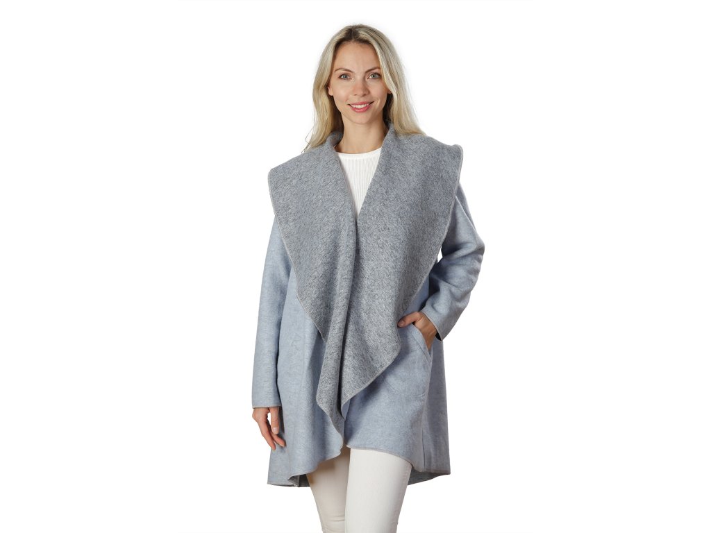 Haina modernă din lână numită Bluebell este fabricată din 100% lână de oaie. Haina este foarte ușor de purtat, dar datorită materialului ales este plăcut de caldă. Haina are o croială lejeră. Nu există închidere sau Velcro pe poale. Haina are mâneci lungi și buzunare pe ambele părți, pe care le veți folosi cu siguranță în sezonul rece.