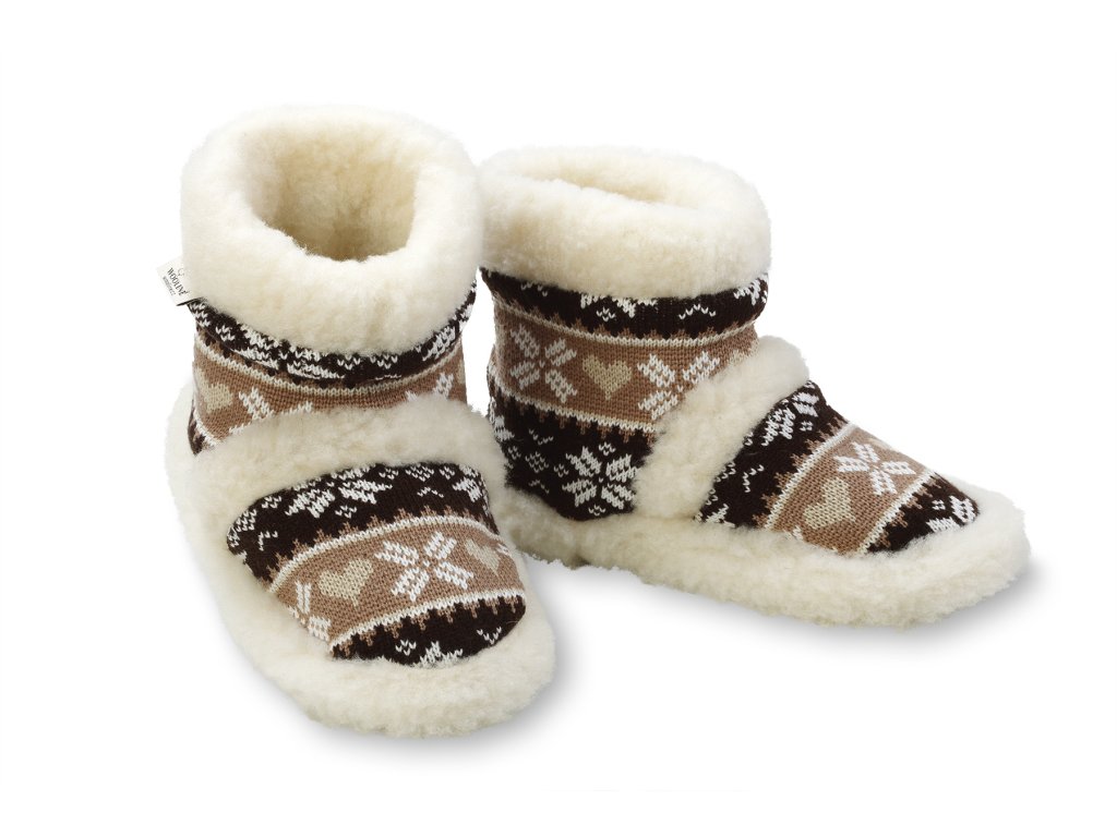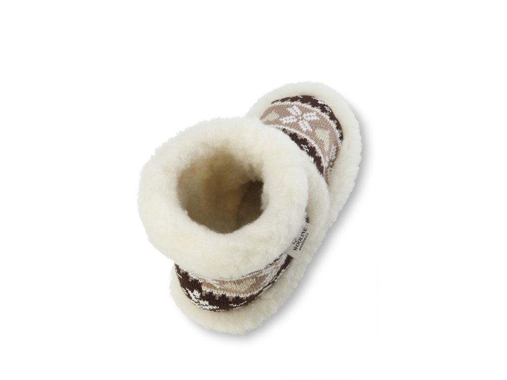 Papuci călduroși din lână de oaie, maro-albi