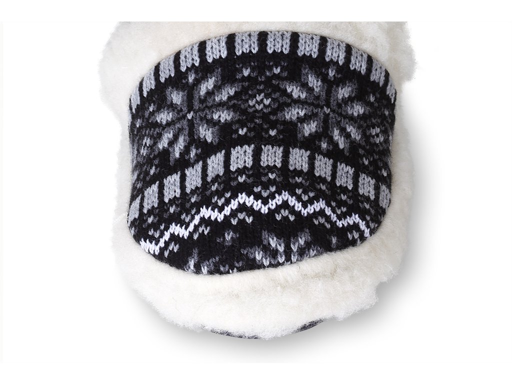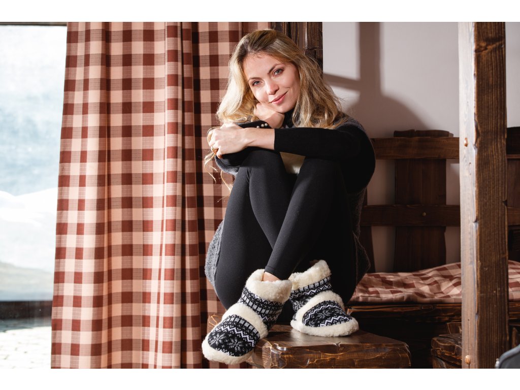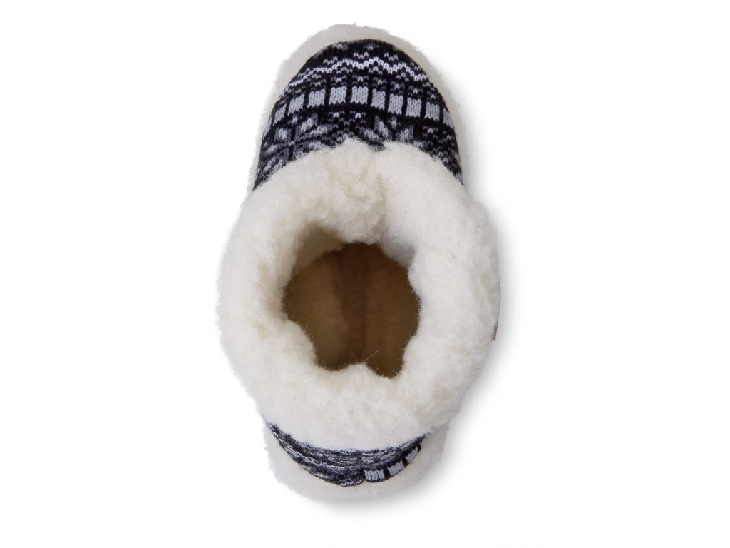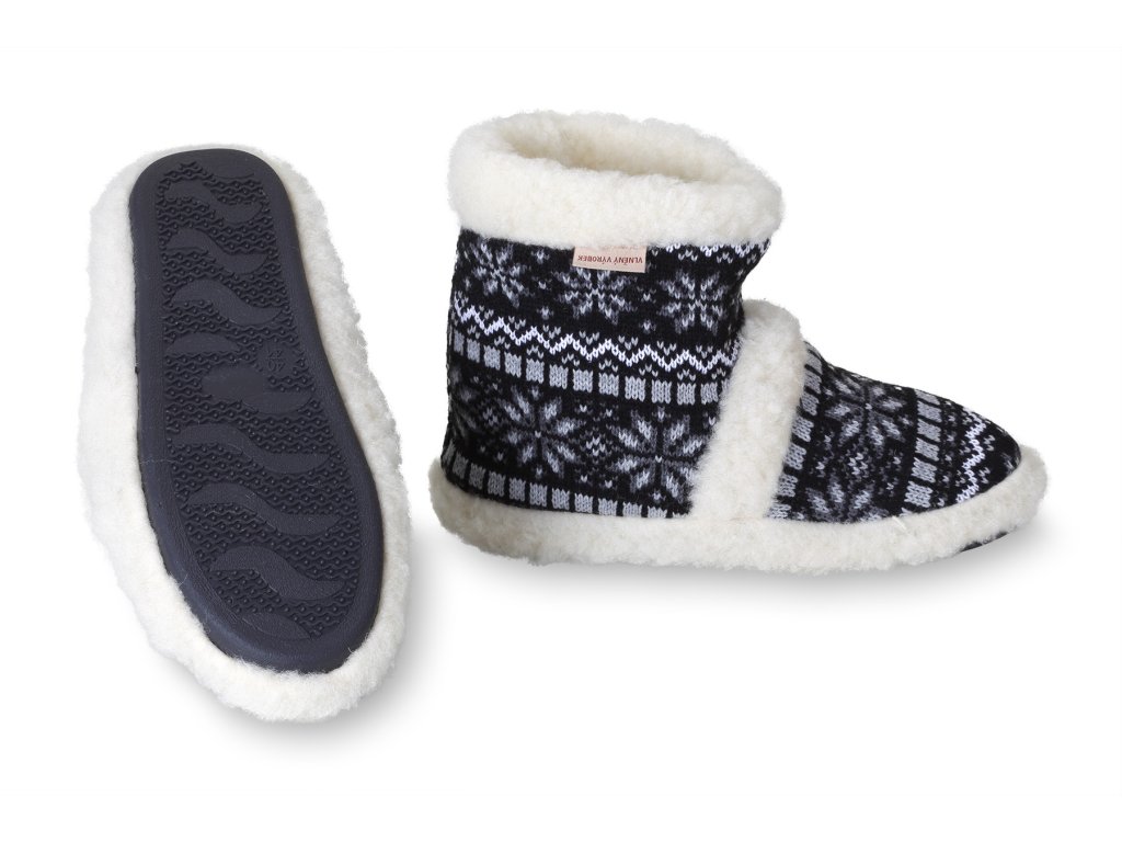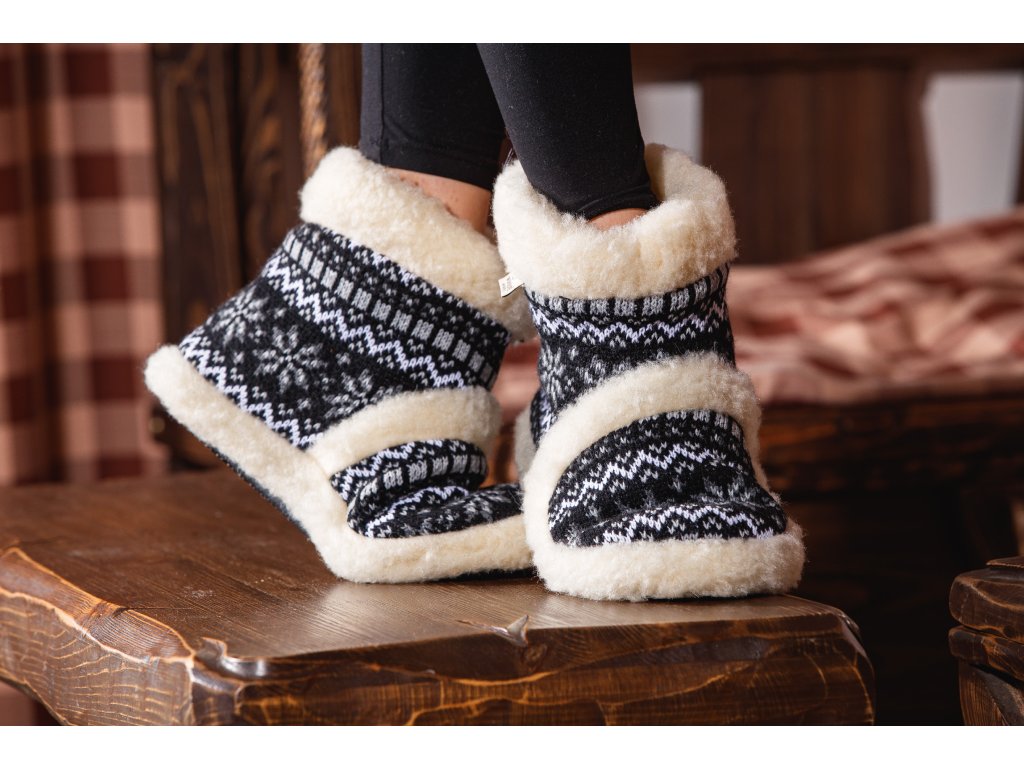 Papuci călduroși din lână de oaie, negru-alb
