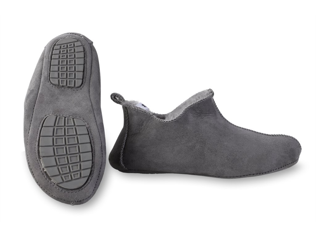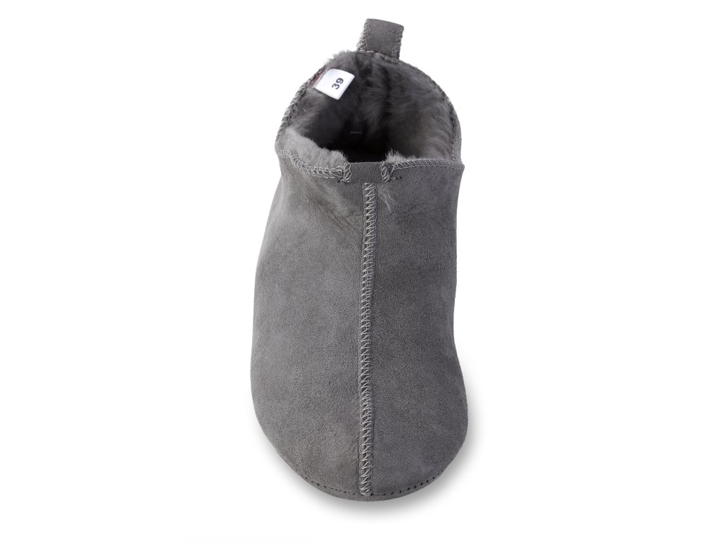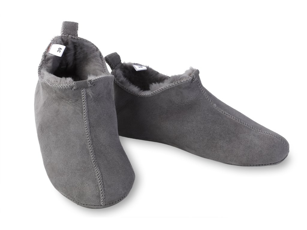 Suprafață: 100% piele naturală de oaie; Talpă interioară: blană de oaie; Talpă: tare; Culoare: gri deschis natural; Tip de încălțăminte: slip-on, pentru acasă; Mărimi disponibile: 38-46