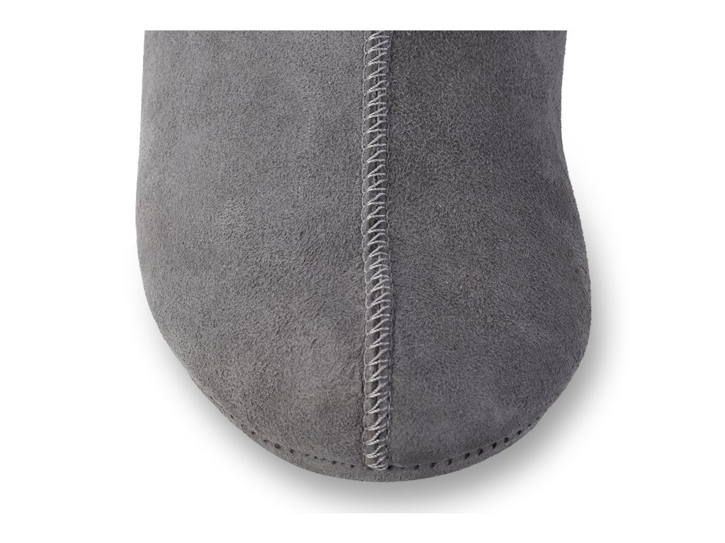 Papucii călduroși din piele Mikuláš în culoarea gri din gama „Exclusive” cu blană naturală de oaie sunt foarte călduroși, moi și se adaptează foarte bine la mărimea și lungimea tălpii piciorului. Acești papuci călduroși sunt potriviți pentru utilizarea în casă.