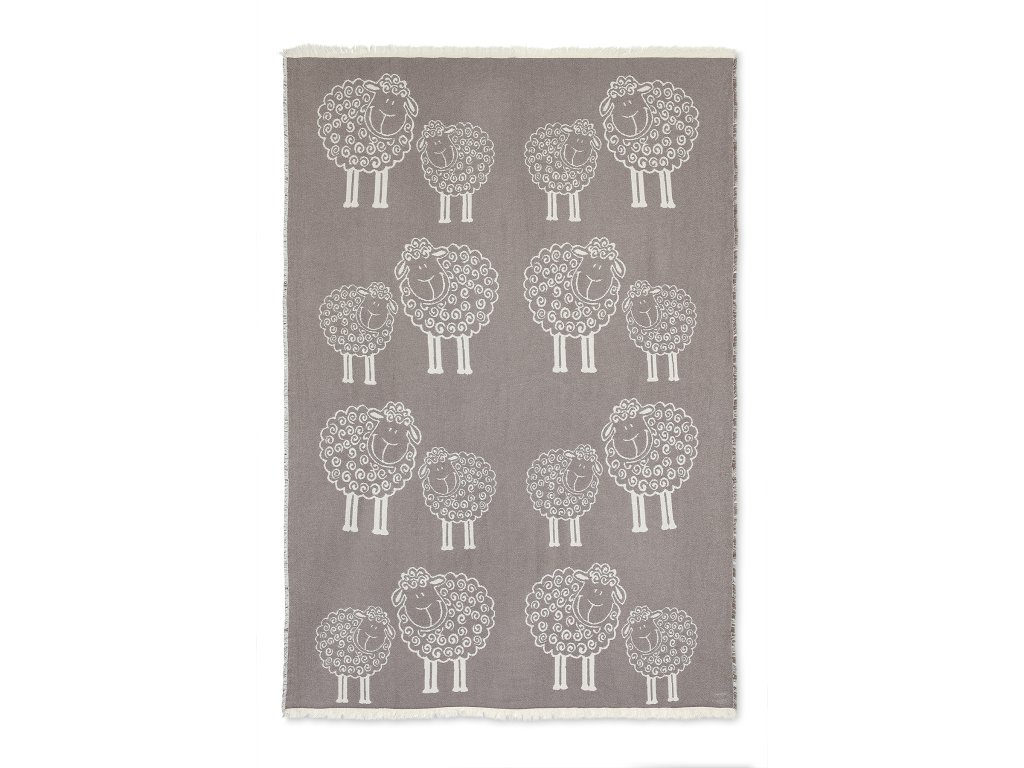 Material: 100% bumbac, Dimensiune: 140 x 190 cm, Culoare: maro și alb, Motiv ilustrat: oaie veselă, Greutate: 1,08 kg