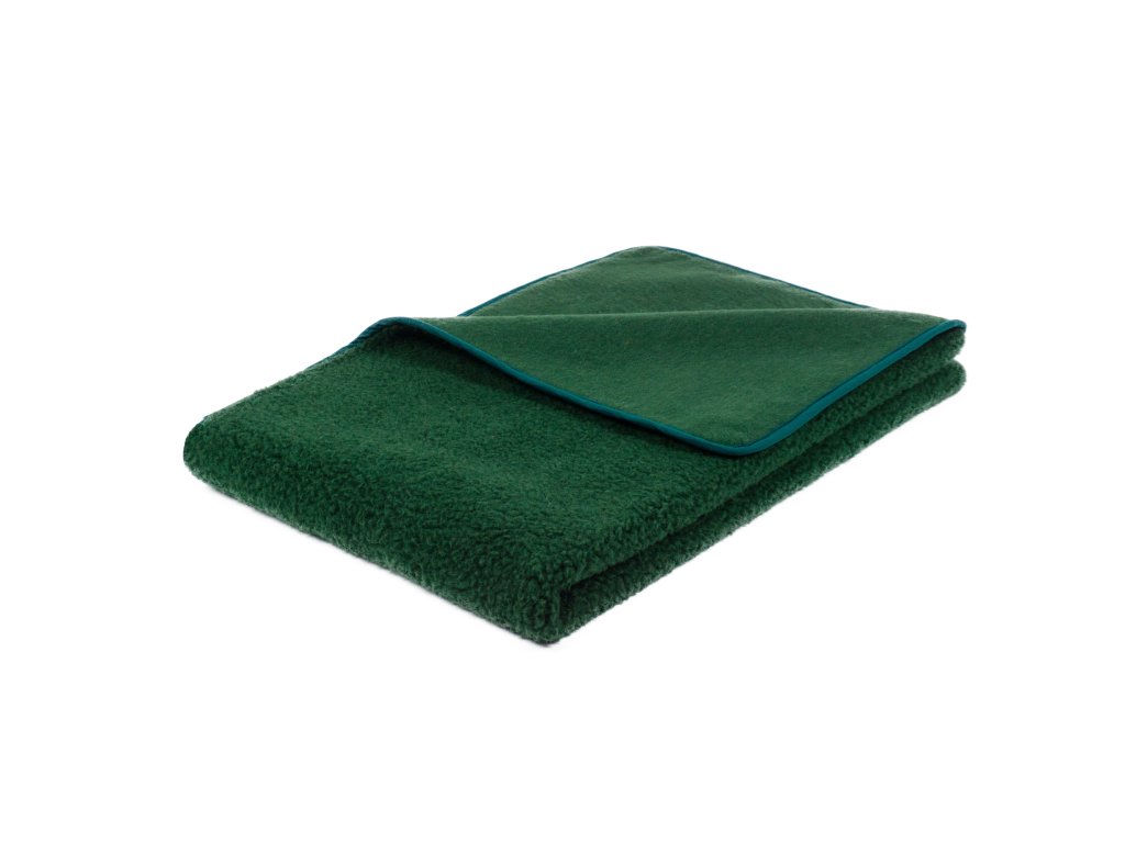 Pătura din lână de oaie în verde intens este fabricată din lână merinos australiană moale, cu o greutate de 500g/m2. Această pătură luxoasă și de calitate asigură senzația de căldură și confort, pe care fiecare persoană o apreciază în special în timpul odihnei și relaxării. Pătura este bordată pe circumferință cu o culoare identică cu cea a păturii, pentru a obține o uniformitate de culoare maximă.