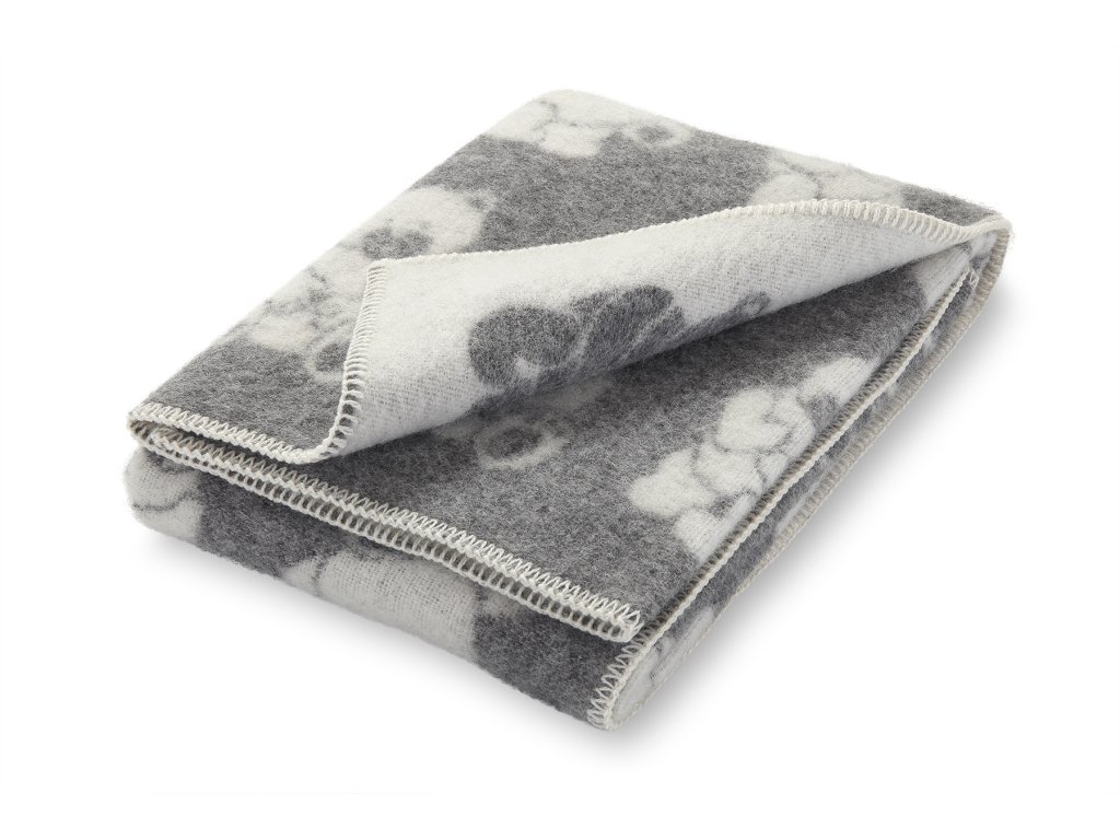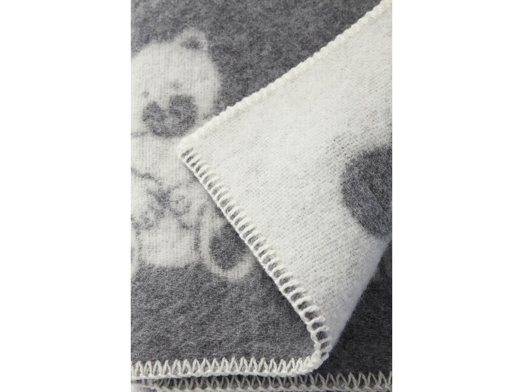Material: 88% lână de oaie din Noua Zeelandă + 12% bumbac, Dimensiune: 90 x 130 cm, Culoare: gri, Motiv afișat: ursuleț, Greutate: 0,57 kg, Greutate: 480g/m2