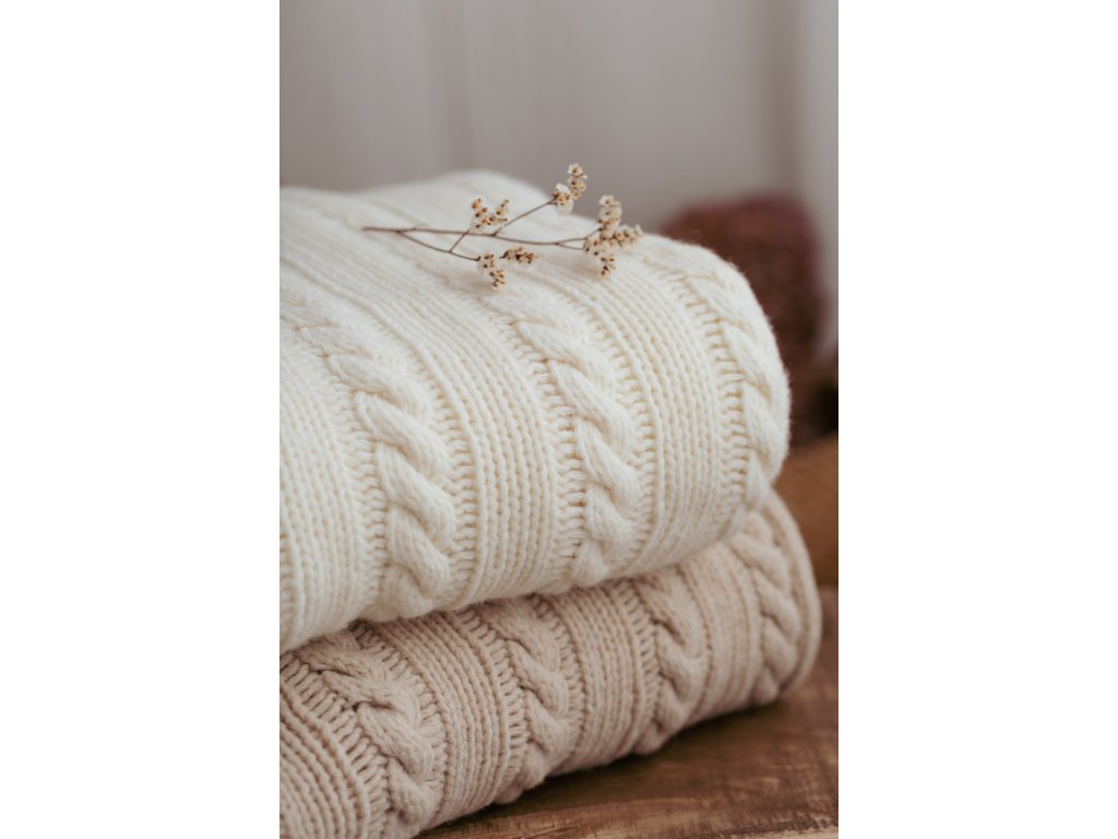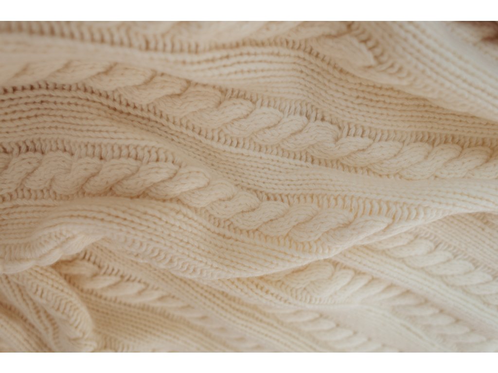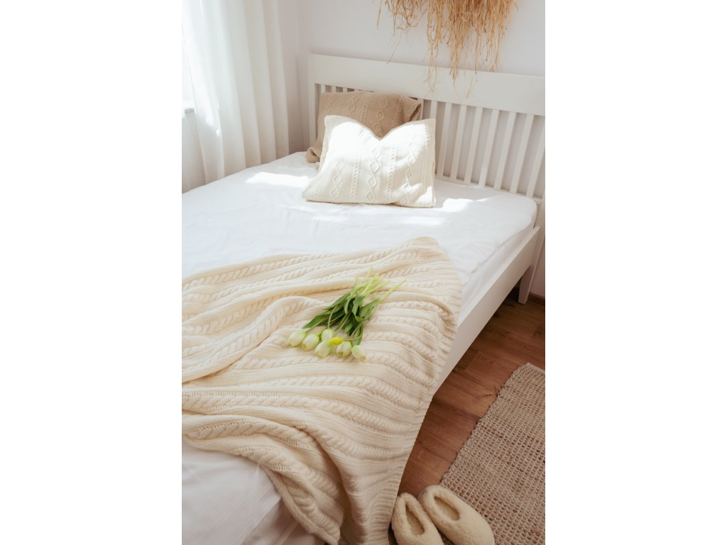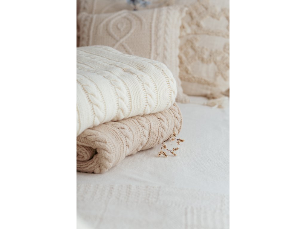 Pătură tricotată Olivia, ecru, 100% Merino Australian moale, greutate 550g/m2