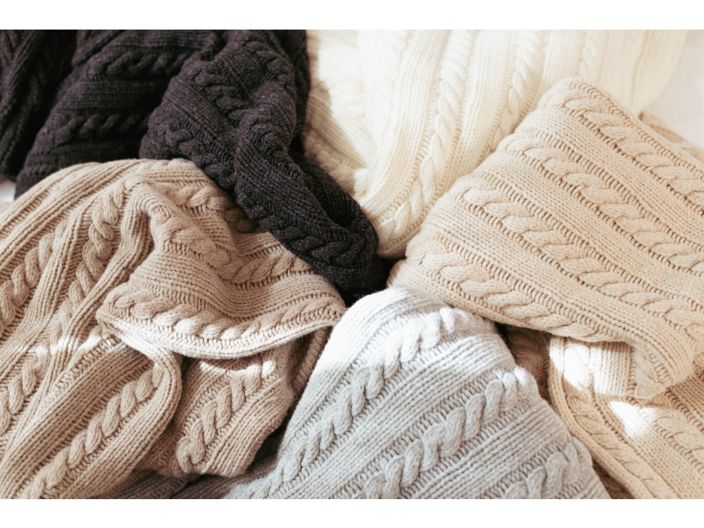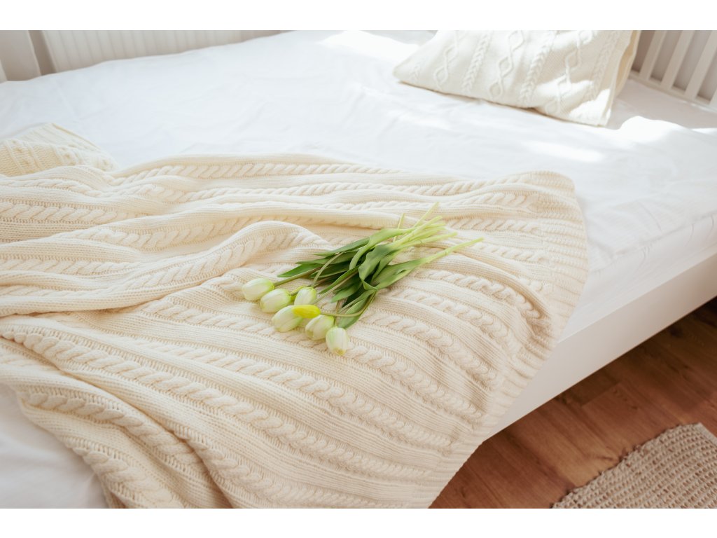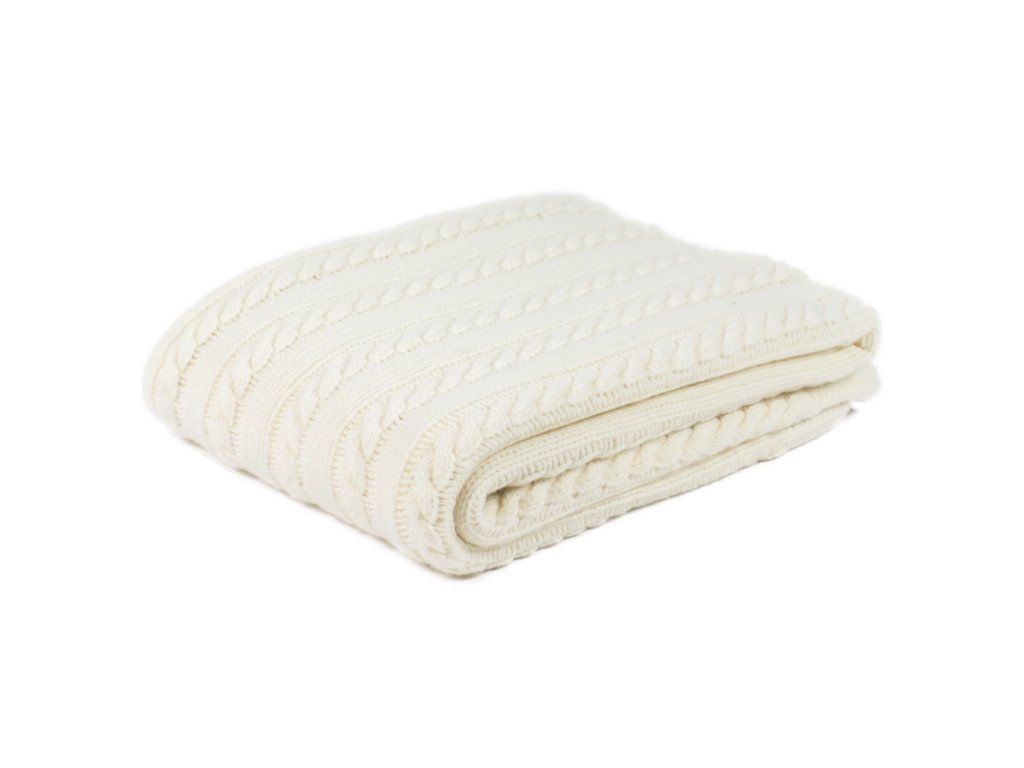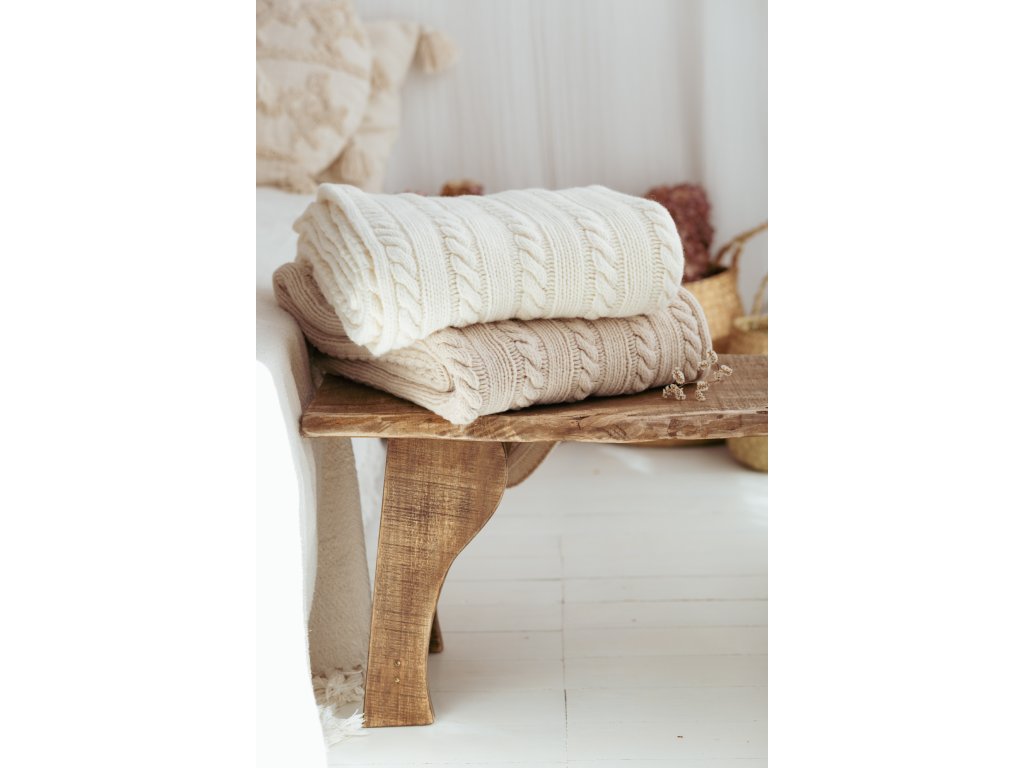 Pătură tricotată Olivia, ecru, 100% Merino Australian moale, greutate 550g/m2