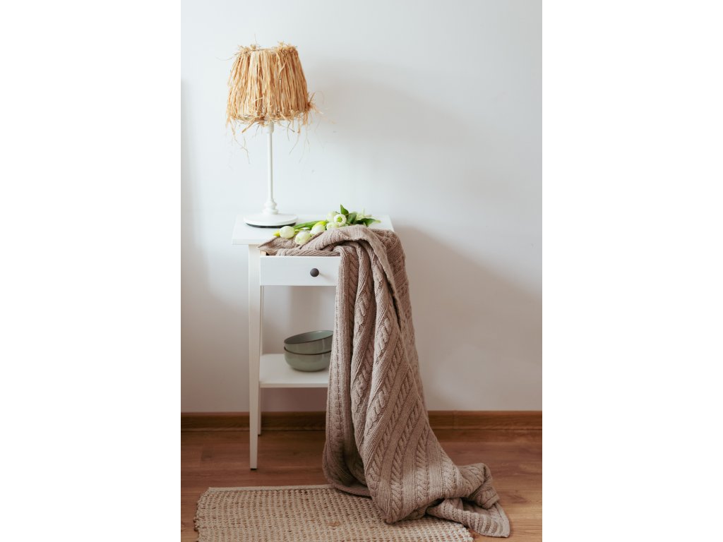 Material: 100% Merino australian;Design: reversibil; Motivul: model regulat împletit; Culoare: maro cafea pe spate și pe față; Dimensiune: 130 x 170 cm, Greutate: 1.2 kg, Greutate: 550g/m2