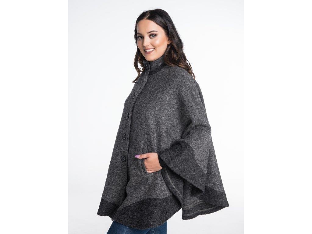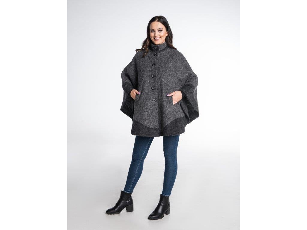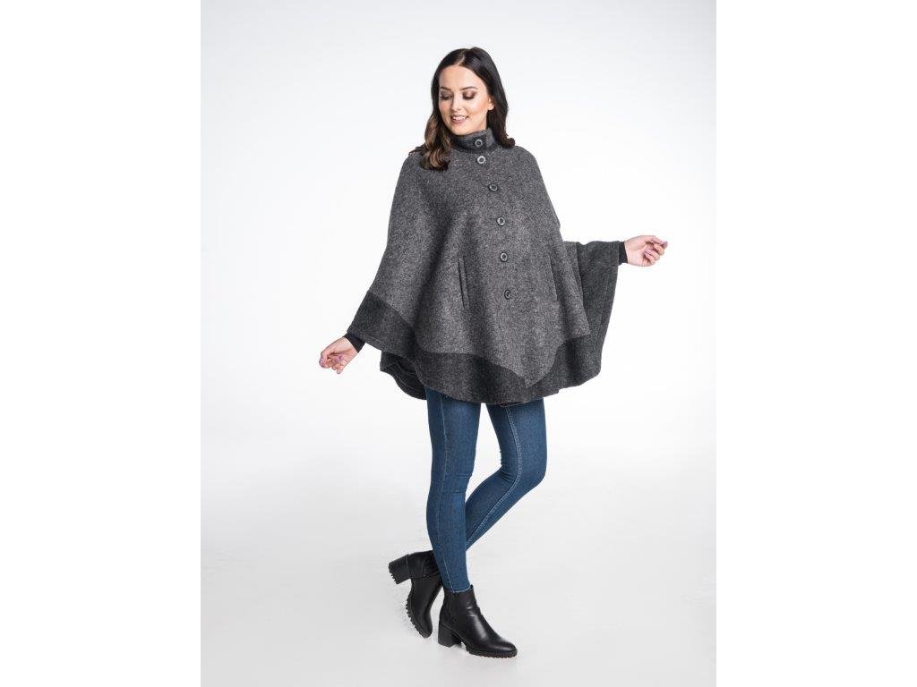 Extrem de elegantă prin simplitatea sa, aceasta este pelerina Irma, în două culori. Culorile acestui model, realizat din 100% lână de oaie, au fost alese în două nuanțe de gri. Modelul Irma este confecționat din tricot de lână, care este ușor în timpul purtării. Proprietățile termice ale lânii sunt foarte bune și, în ciuda greutății sale reduse, pelerina menține bine temperatura corpului. Modelul Irma se îmbracă prin tragere pe cap. Un mare avantaj este gulerul înalt, care protejează gâtul persoanei care poartă produsul. Menținerea căldurii în aceste părți ale corpului este în lunile de toamnă foarte importantă pentru prevenirea răcelilor. Ponchoul Irma nu este căptușit. Este vorba despre un model potrivit pentru zilele ploioase de toamnă.