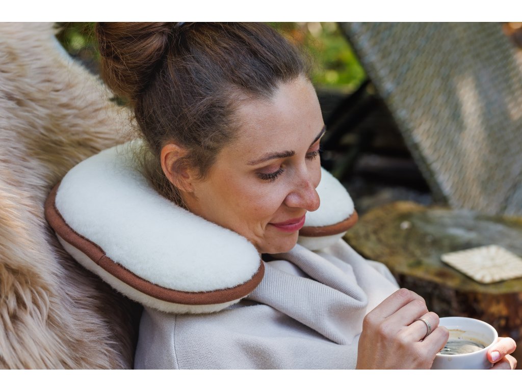 Această pernă specială în formă de potcoavă este fabricată din lână Merino și măsoară 40 x 10 x 30 cm. Cea mai fină lână, cunoscută sub numele de Merino australian, a fost folosită pentru a confecționa bentița potcoavei. Materialul folosit nu conține niciun alt aditiv, este 100% Merino australian.