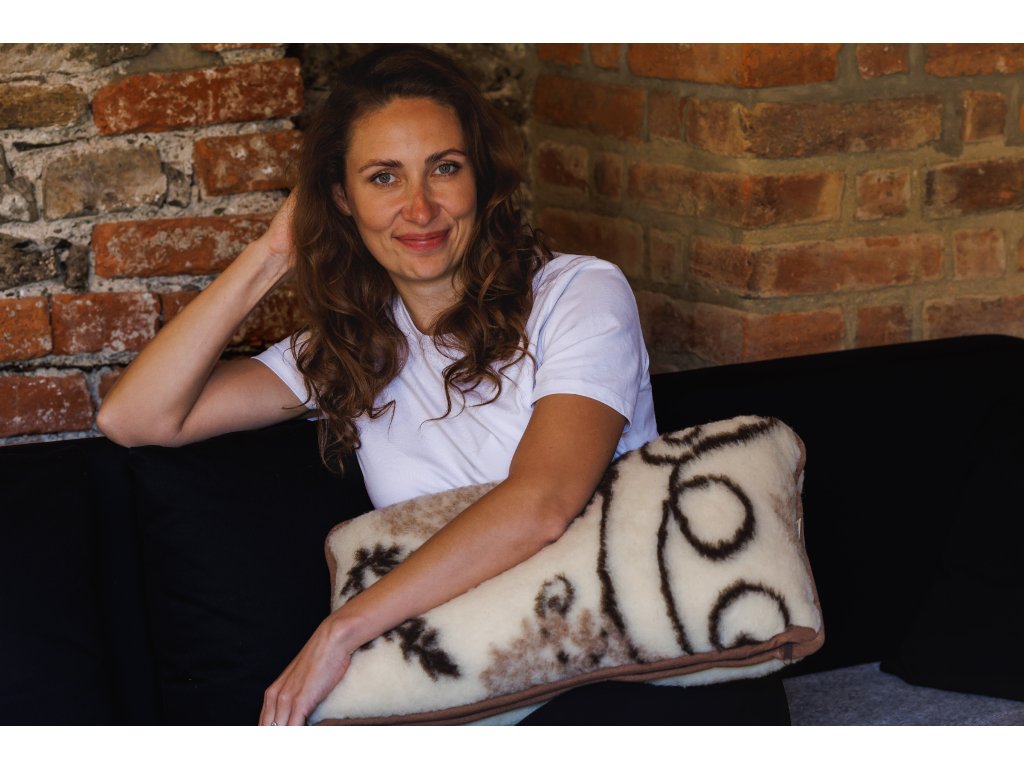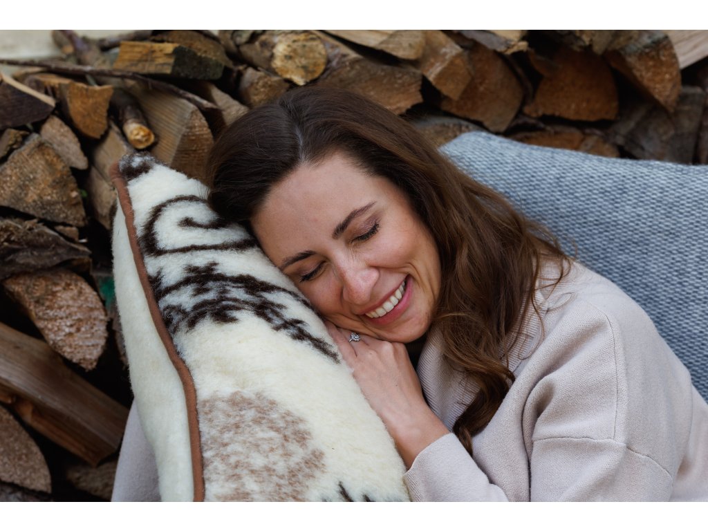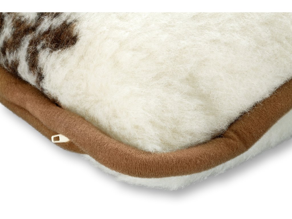 Perna decorativă din 100% lână de oaie are o formă dreptunghiulară și o dimensiune de 40 x 60 cm. Suprafața sa este fină și plăcută la atingere.