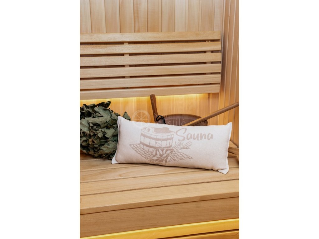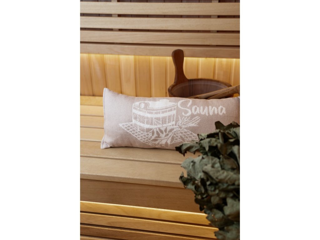 Perna pentru saună vă oferă un confort sporit pentru cap în timpul petrecut în saună. Dimensiunea pernei din bumbac este de 50 x 22 cm. Motivul de pe pernă e pe ambele părți. Fiecare parte a pernei are o nuanță ușor diferită.