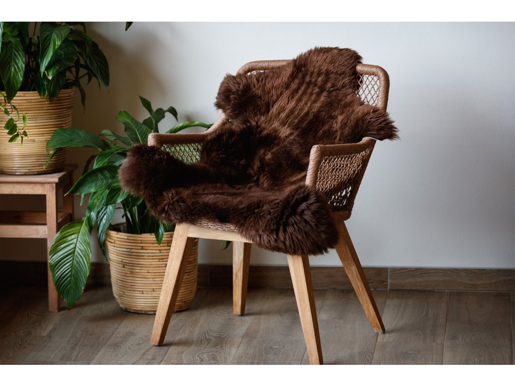 Piele de oaie maro este de origine naturală, fără niciun fel de vopsire chimică. Singura prelucrare este tăbăcirea ei.