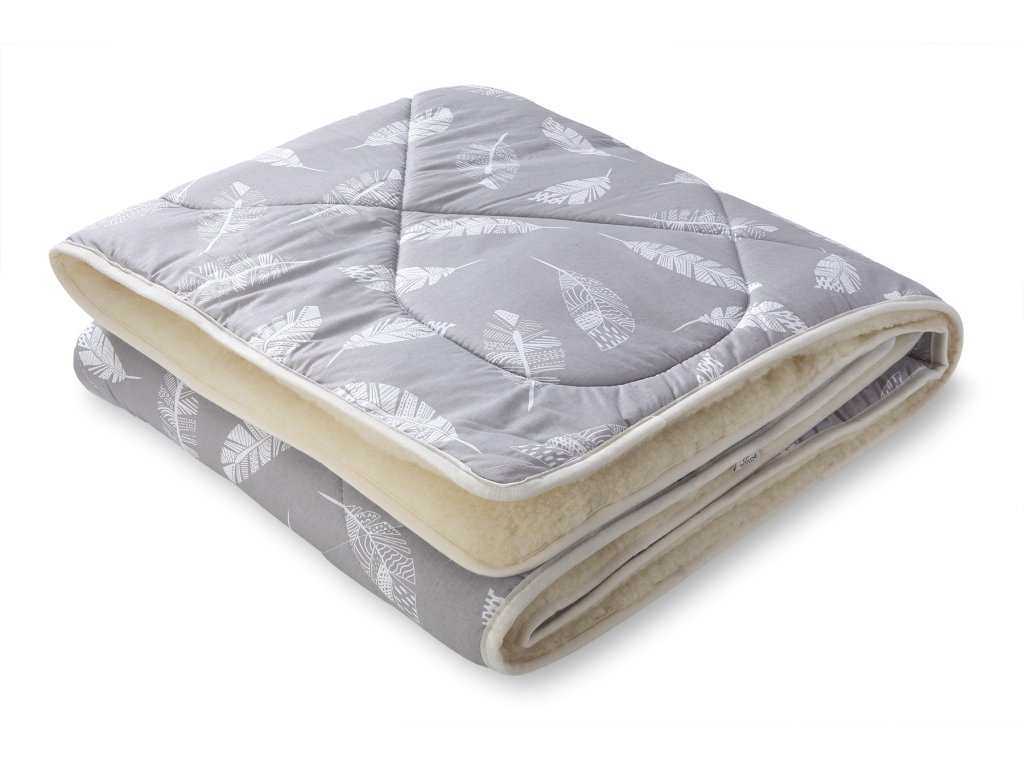 Pilotă Merino Europeană, 140x200 cm, cu două fețe, gri cu motiv de pene