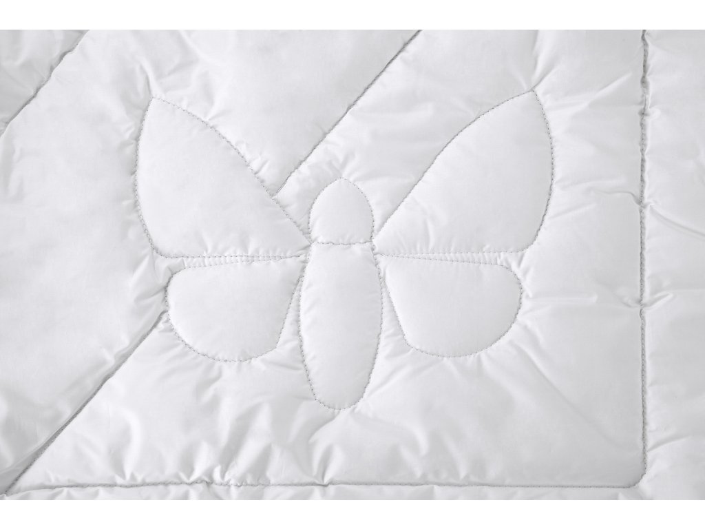Material: capac 100% bumbac, umplutură 80% mătase + 20% poliester, Dimensiune: 220 x 200 cm, Culoare: alb, Design: matlasat, Greutatea umpluturii: 700g