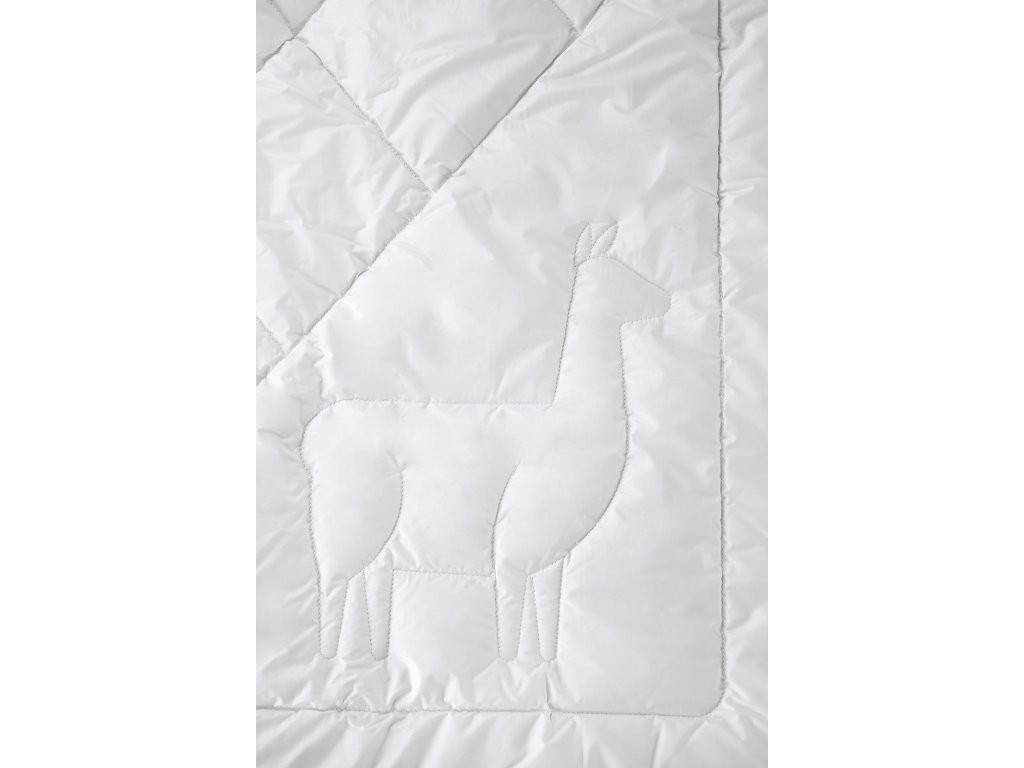 Material: capac 100% bumbac, umplutură 80% lână de alpaca + 20% poliester, Dimensiune: 220 x 200 cm, Culoare: alb, Design: matlasat, Greutatea umpluturii: 700g